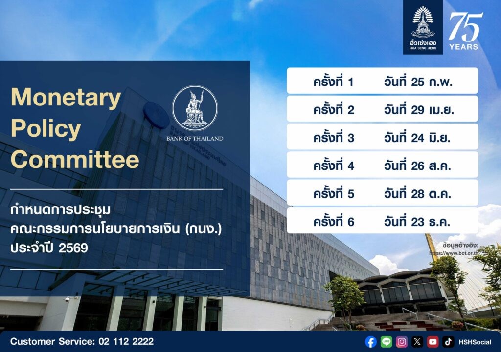 กำหนดการประชุมธนาคารกลางสำคัญ ตลอดปี 2569 ทั้งเฟด ECB BOJ และ กนง.ของไทย ฮั่วเซ่งเฮงแนะเซฟเก็บไว้ เพื่อใช้ติดตามทิศทางเศรษฐกิจและนโยบายการเงินอย่างใกล้ชิด
