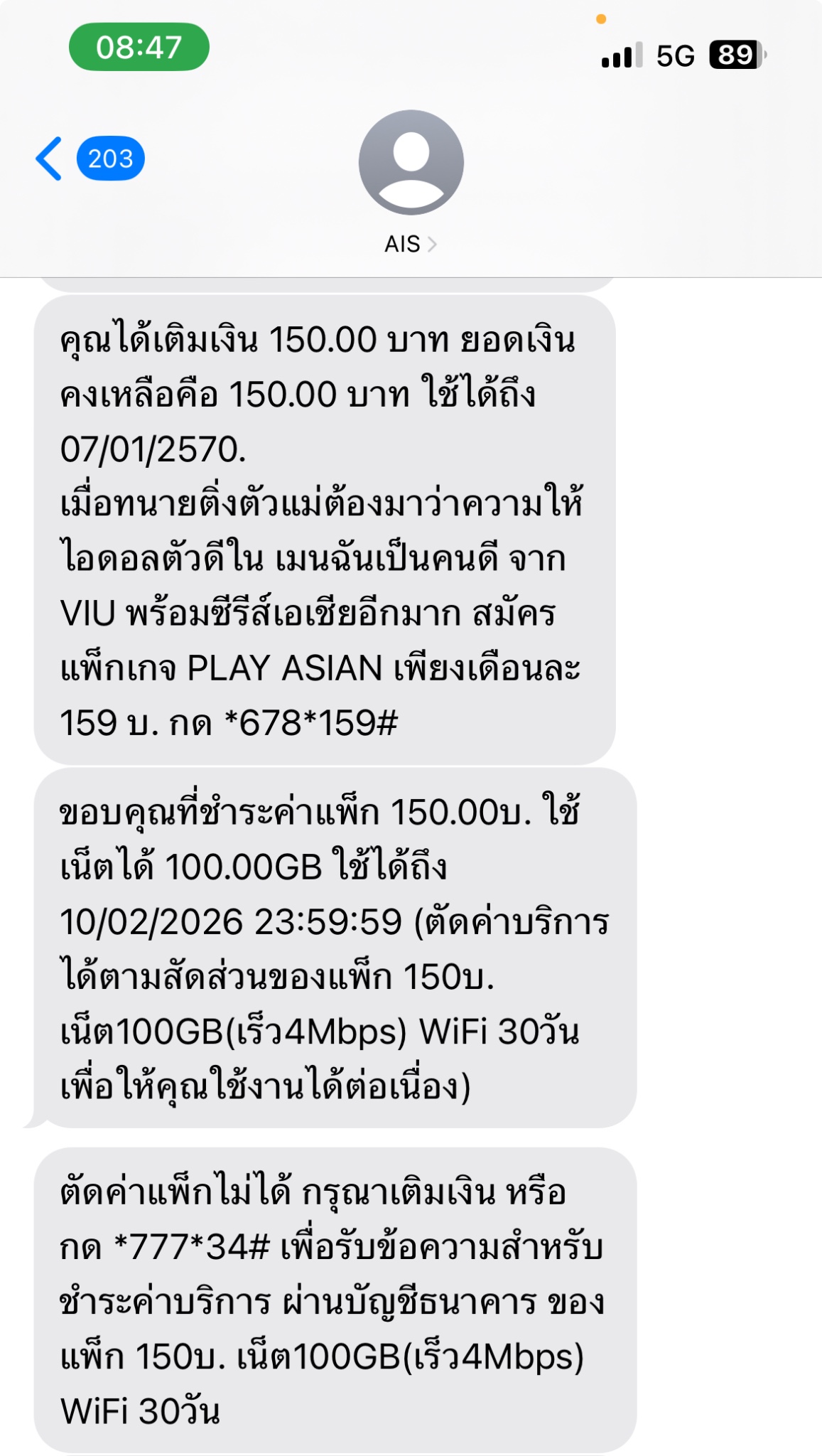 ตอนแรกบอกตัดค่าบริการสำเร็จแต่พอ2นาทีต่อมากบอกว่าตัดค่าบรอการไม่สำเร็จคืออะไรคะ เงินก็ออกไปแล้วแต่ไม่ได้เน็ตถึงจะแค่150แต่ก็เป็นเงินเราเสียดาย😭