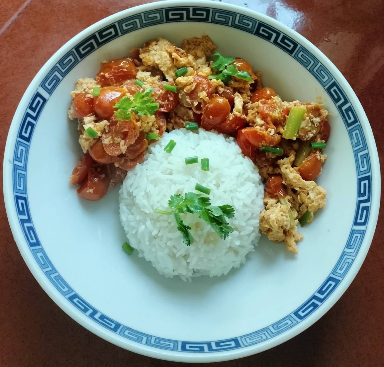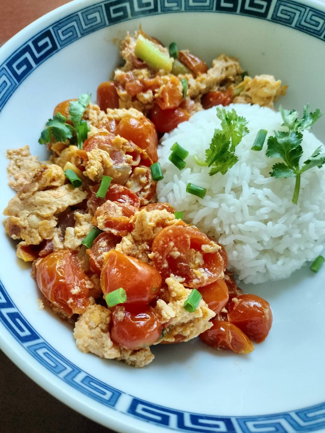 มื้อเช้าวันนี้ ... มะเขือเทศผัดไข่ ...