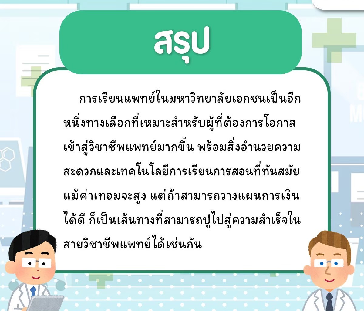 สรุปแล้ว แพทย์เอกชนคือ "โอกาส" สำหรับคนที่พร้อมจะลงทุนกับความฝันและอนาคตวิชาชีพที่มั่นคงครับ