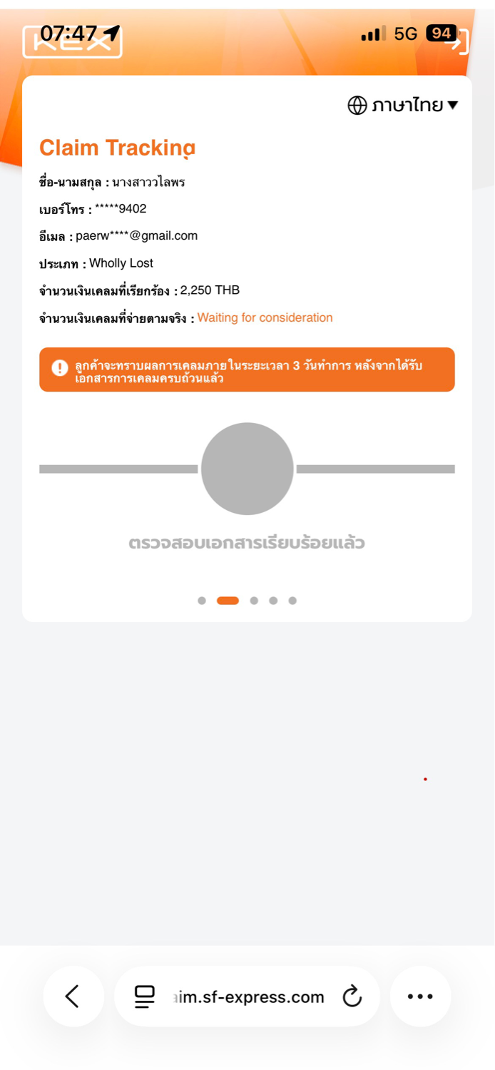 ร้องเรียนการบริการและการจัดส่งพัสดุของ KEX