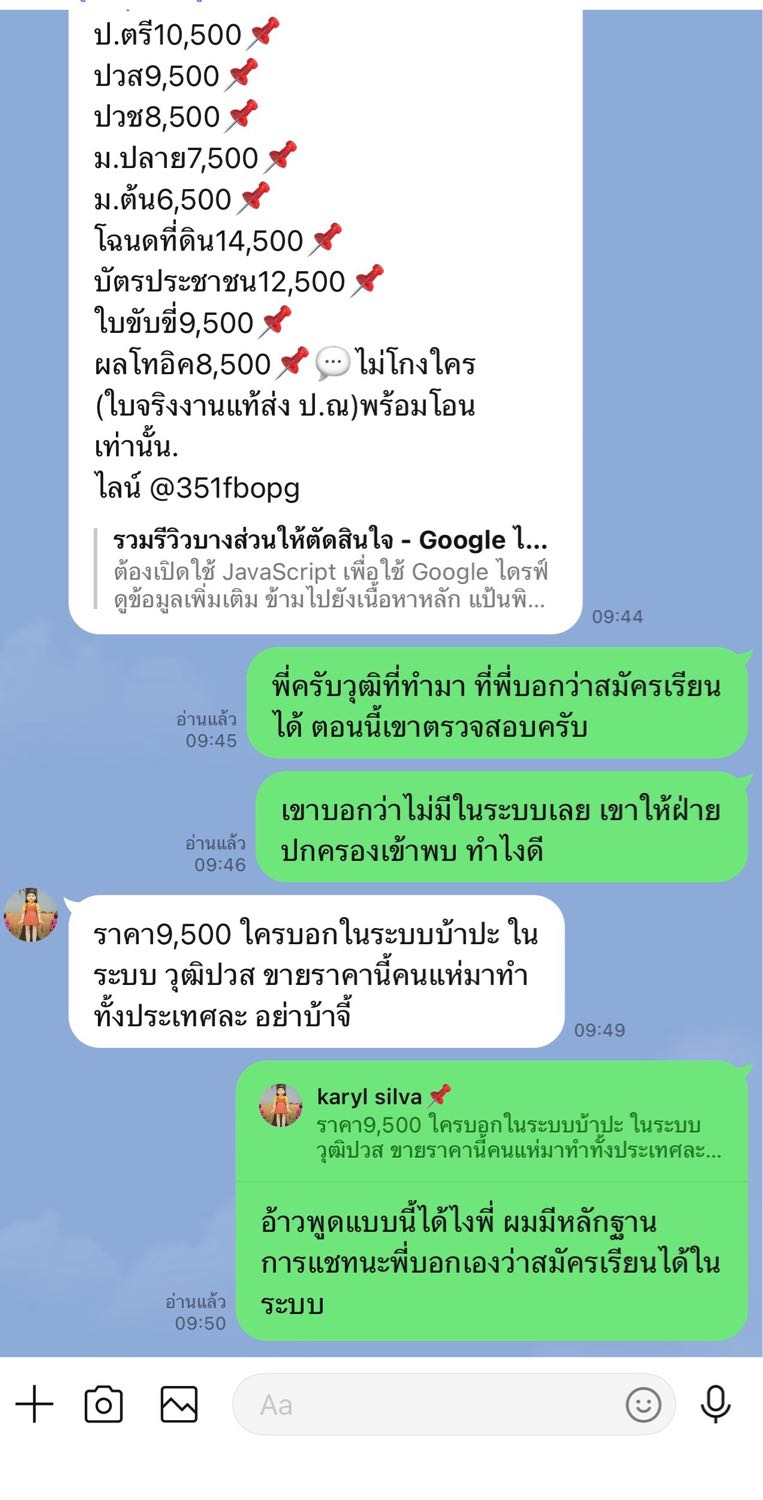 วุฒิปวส เขาบอกสามารถทำในระบบได้ เราสั่งโอนไอนไป9,500 มันบอกว่า สามารถนำไปสมัครเรียนได้ เช็คในระบบได้ เราก็หลงเชื่อ เพราะรอบแรกเคยสั่งทำเอกสารบางอย่างเห็นว่ารีวิวดี เลยตัดสินใจ ซื้อปวส