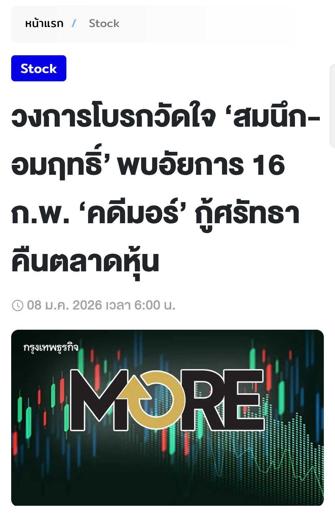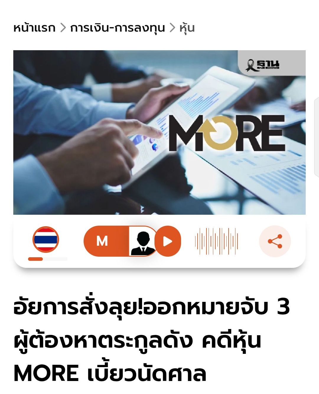 ความคืบหน้า คดีหุ้น MORE อัยการฟ้อง 29 ราย ออกหมายจับเพิ่ม เร่งปิดจ๊อบคดีทุจริตตลาดทุน https://www.bangkokbiznews.com/finance/stock/1215554