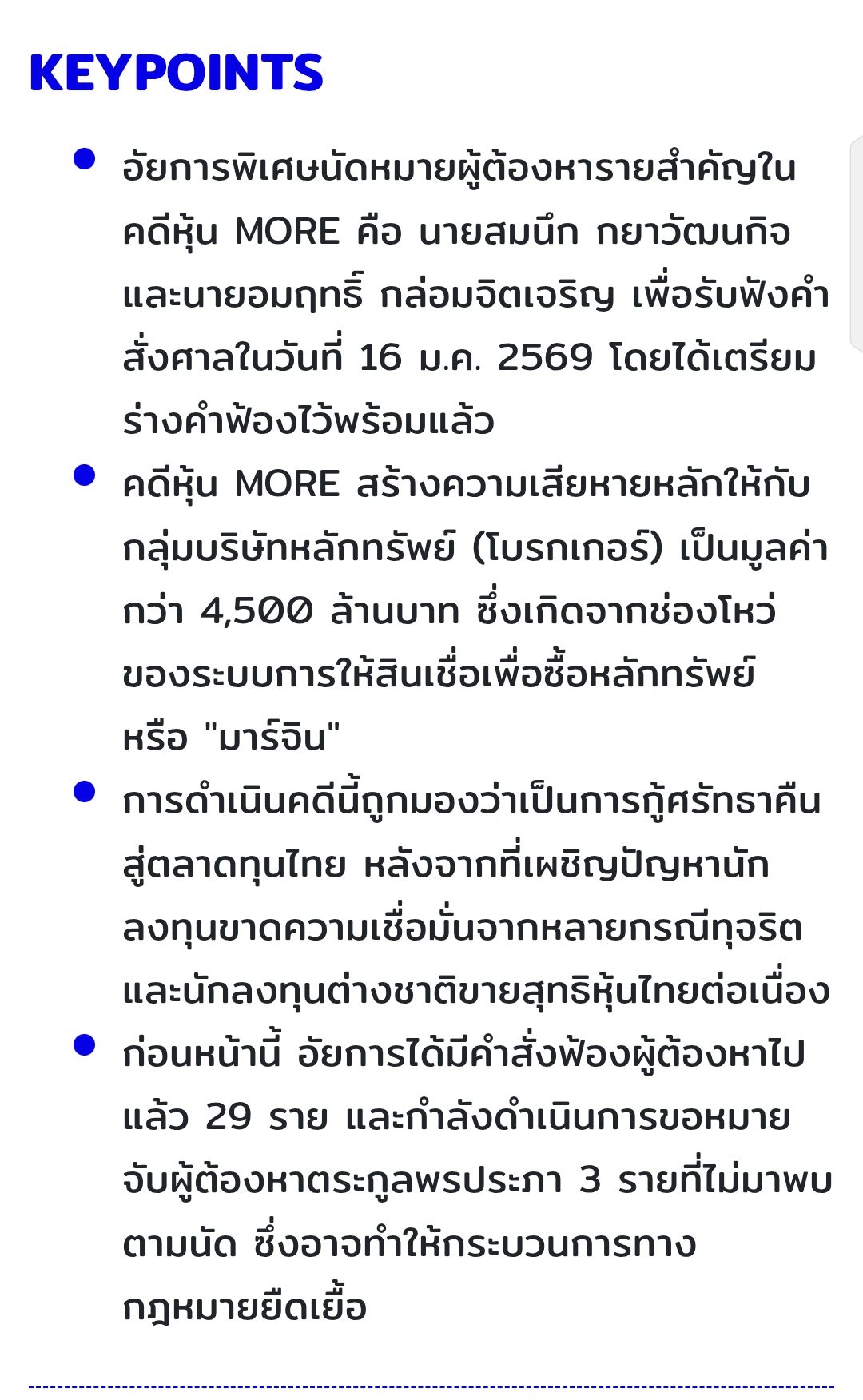 ความคืบหน้า คดีหุ้น MORE อัยการฟ้อง 29 ราย ออกหมายจับเพิ่ม เร่งปิดจ๊อบคดีทุจริตตลาดทุน