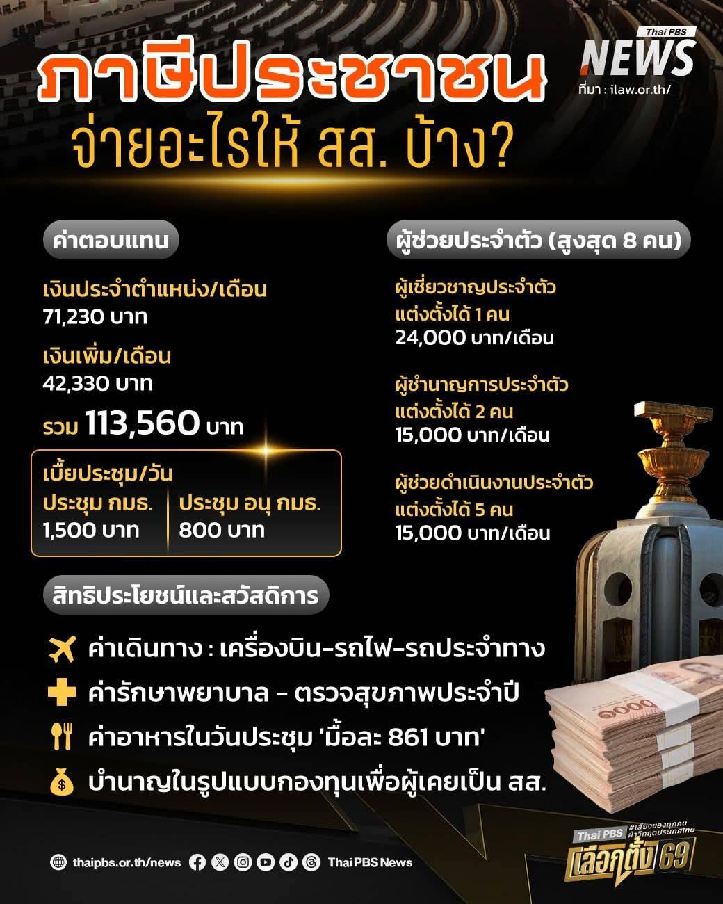 เข้าสู่ช่วงเข้มข้นการหาเสียงเลือกตั้ง 2569 เพื่อเลือกผู้แทน เข้าไปทำงานในสภาฯ วันนี้ไทยพีบีเอส จะพาไปดูสิทธิสวัสดิการ ค่าตอบแทน ของ สส. 1 คน ซึ่งการทำหน้าที่ของผู้แทนนั้นไม่ใช่จิตอาสา อีกทั้งค่าตอบแทน มาจากภาษีของประชาชนทั่วประเทศ เพื่อให้เข้าไปเป็นปากเป็นเสียงของประชาชน