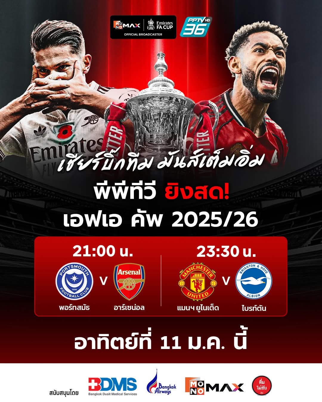 พีพีทีวี ยิงสด! ศึกเอฟเอ คัพ 2025/2026