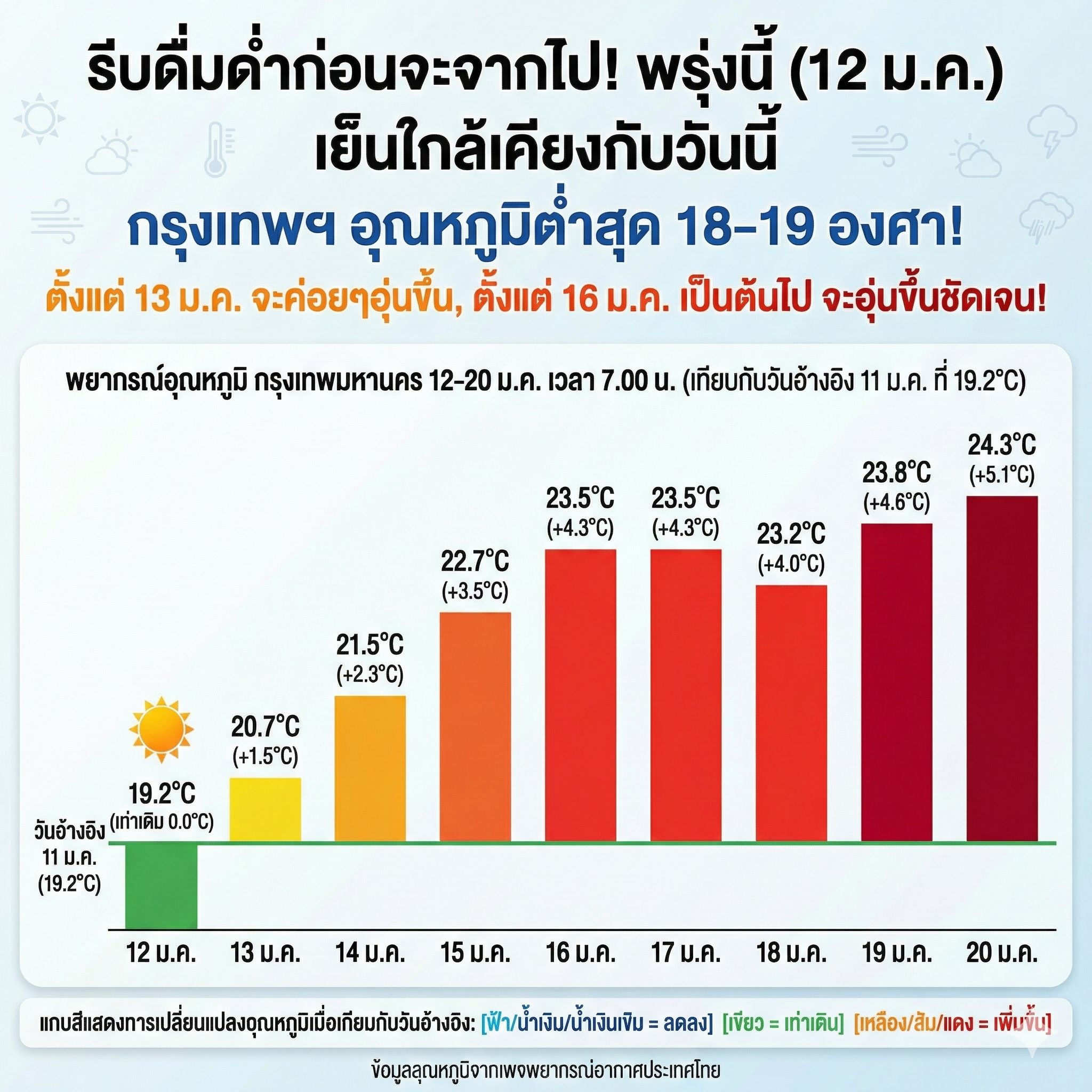 12 ม.ค.: 19.2°C (เย็นเท่าเดิม 🥶)