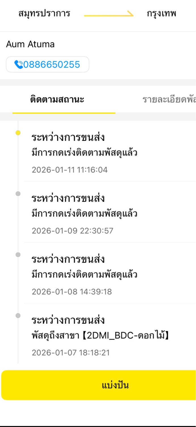 Flash Express พัสดุถึง Hub [2DMI_BDC-ดอกไม้] ตั้งแต่วันที่ 7/1/26 แล้ว แต่ไม่มีการนำจ่าย โทรไปเบอร์คลังก็ไม่มีใครรับ ฝากหมายเลขโทรกลับ ปกติวันเดียวของก็นำจ่ายแล้ว แต่นี่สถานะยังไม่ขยับไปไหนเลยต้องการใช้ของด่วน