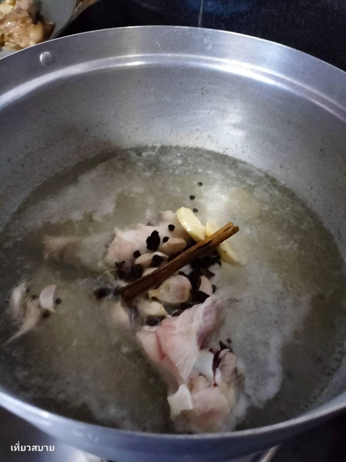 สรุป คือ ตั้งน้ำต้มให้เดือด ใส่กระดูกขาลงไปเคี่ยว ใส่เครื่องเทศลงไปค่ะ (เอาง่ายเข้าว่า หรืออีกนัยหนึ่งคือ มักง่าย!!)