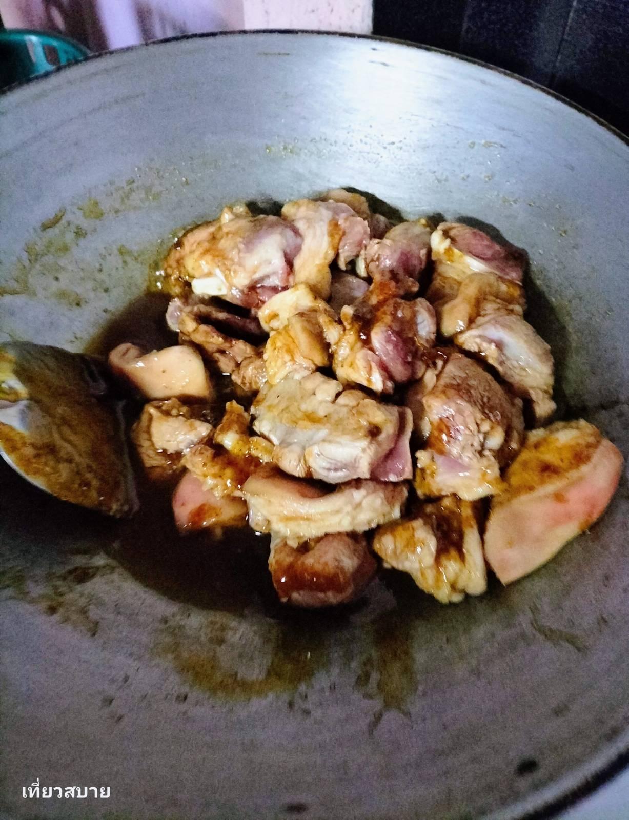 3.จากนั้นเอาหมูลงไปผัด คลุก