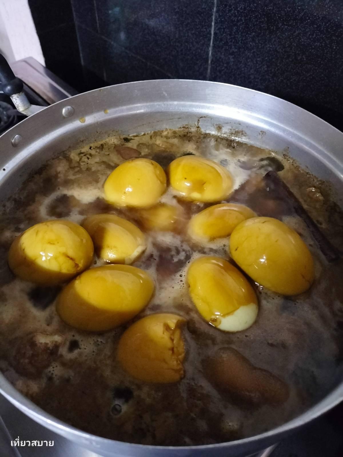 2. ไข่เป็ดต้มสุก : ปอกเปลือกนำมาคลุกซีอิ๊วดำ เตรียมไว้