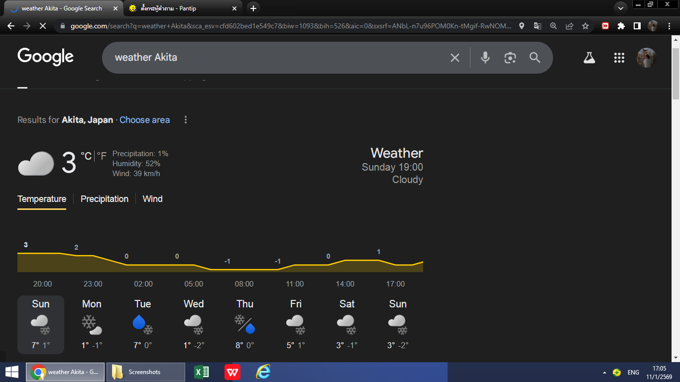 อากิตะ 3 องศา ความเร็วลม 39 องศา