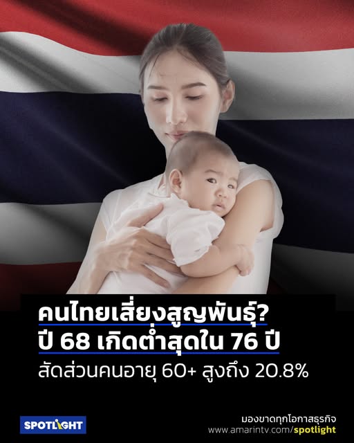 อัตราการเกิดของไทยลดลงสู่ระดับต่ำสุดในรอบกว่า 7 ทศวรรษโดยในปี 2568 มีเด็กเกิดใหม่เพียง 416,574 คน ลดลงจาก 462,240 คนในปี 2567 และต่ำกว่า 500,000 คนเป็นปีที่สองติดต่อกัน ขณะที่จำนวนประชากรทั้งประเทศลดลงมาอยู่ที่ 65.83 ล้านคน สะท้อนการหดตัวของโครงสร้างประชากรอย่างชัดเจน