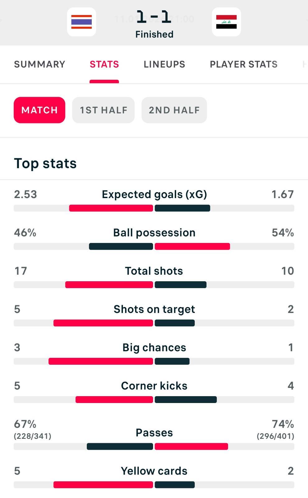 แต่ชื่นชมโค้ชวังแก้เกมดีมาก และนักเตะไทยเหมือนจะหมดแรงช่วงนาที60+ แต่พอเข้านาที 80กลับวิ่งกันเต็มที่อีกครั้ง