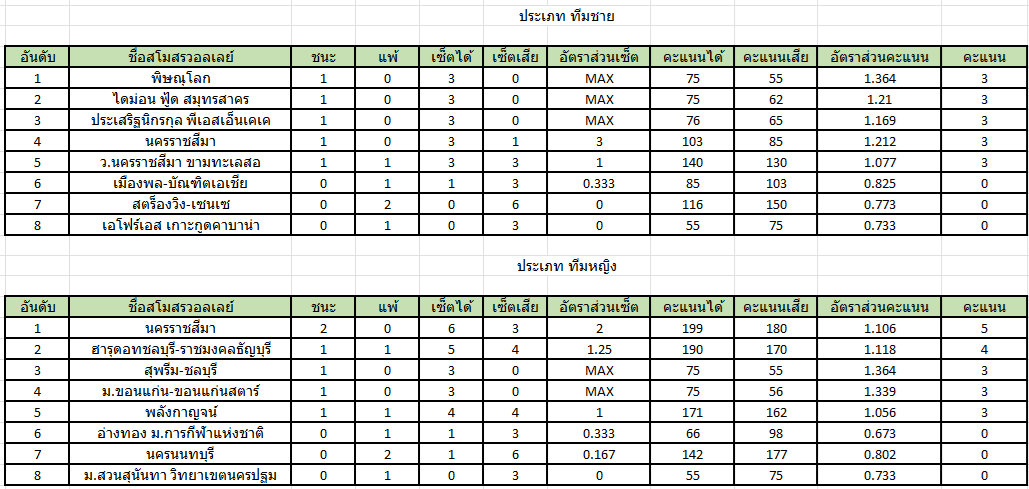 ตารางคะแนน วอลเลย์บอล ไทยลีก ประจำสัปดาห์ที่ 1 วันที่ 7 - 10 มกราคม 2569