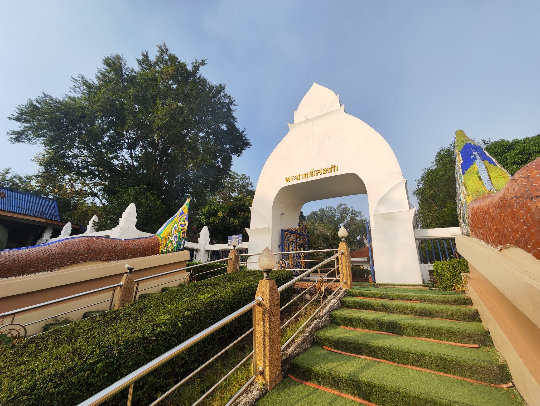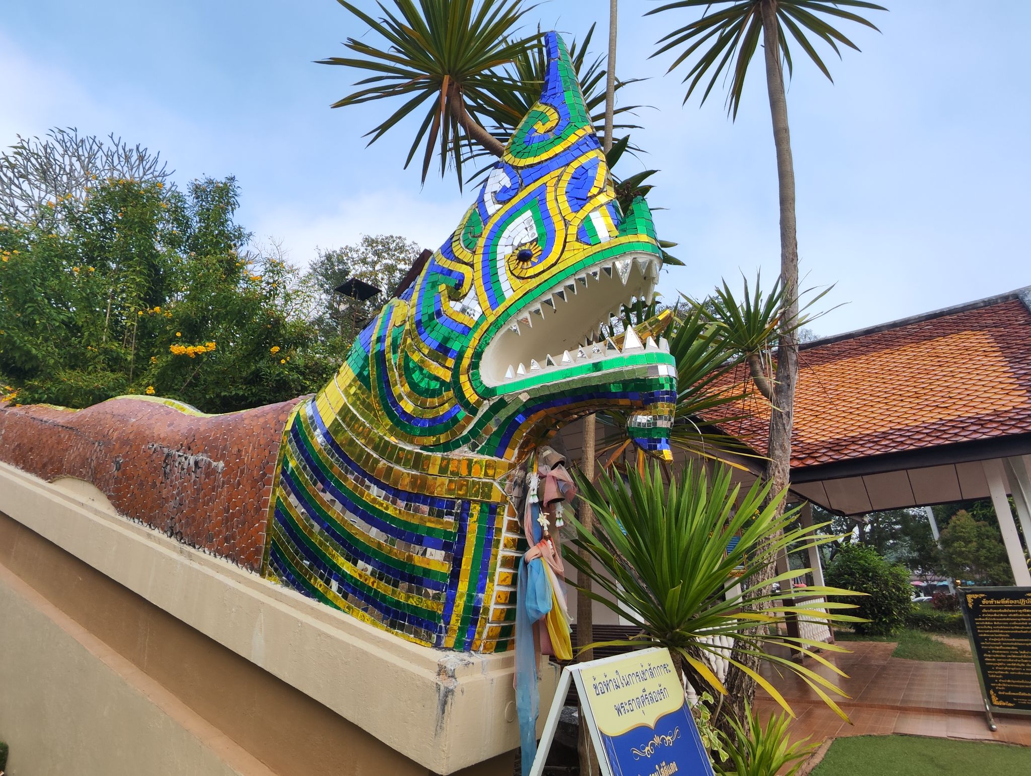 ตรงบันไดทางขึ้นก็มีพญานาครูปทรงแปลกตาอยู่ด้วยนะ บรรยากาศโดยรวมดูโบราณจริงสมคำร่ำลือ ศาลาที่อยู่ถัดไปข้างๆ เป็นมุมดอกไม้กับเทียน ก็คือหยิบเอาได้เลยถ้าไม่มีคนอยู่ อย่าลืมร่วมทำบุญตามศรัทธานะ หยิบเทียนกับแผ่นทองชุดนึงและดอกไม้กำนึง ไม่มีธูปนะ ไม่ต้องเดินหา
