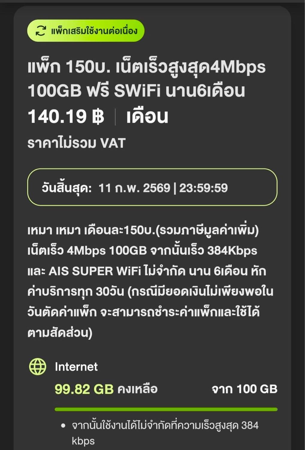 ขอเพิ่มวงเงิน AIS รายเดือนเบอร์ 087-906-2480