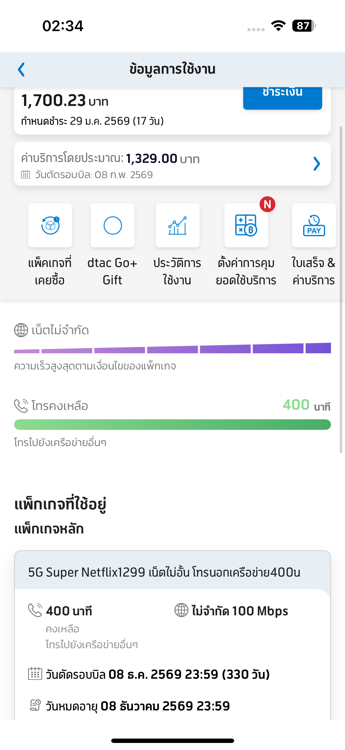 สวัสดีคะ ปัจจุบันใช้ Dtac รายเดือน 319 บาท รวมภาษีแล้ว เงื่อนไข โทร 300 นาที เน็ต 16 GB แต่ปัจจุบันใช้เน็ตเกิน 16 GB แต่โทรไม่เคยถึง 300 นาที เฉลี่ยอยู่ที่ 200 นาที ต้องการให้ค่าโทรศัพท์อยู่ในช่วงร
