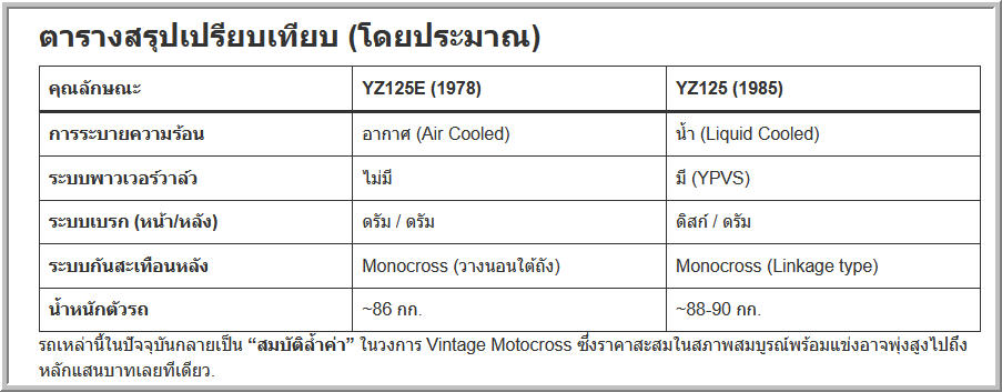 นี่คือรายละเอียดทางเทคนิคของรถที่เป็น “อาวุธ” หลักในยุคนั้น โดยเฉพาะรุ่นยอดนิยมอย่าง YZ125 ครับ: