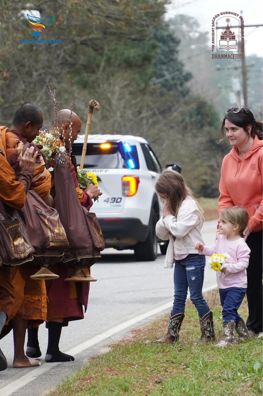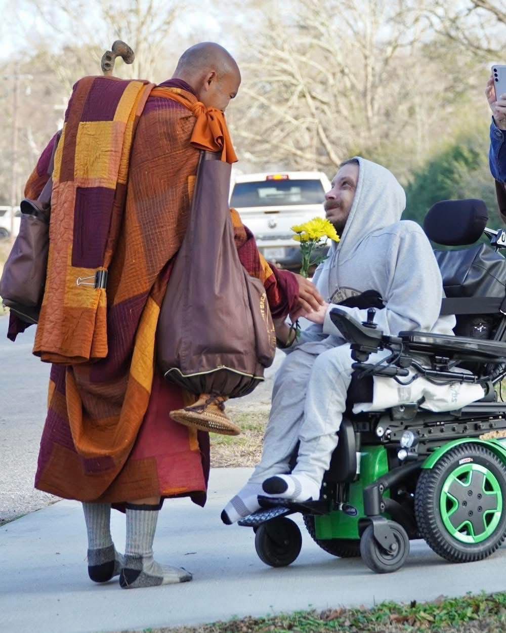 2- การเดินครั้งนี้มีผู้นำคือ “พระปัณณกราภิกขุ“ (Bhikkhu Pannakara) พระสายเถรวาทชาวเวียดนาม ซึ่งเป็นรองเจ้าอาวาสวัด Huong Dao ในรัฐเท็กซัส