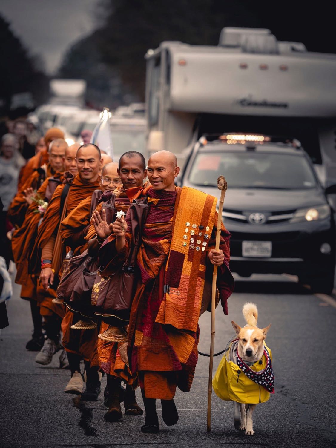 12- ตอนนี้การเดินของพระสงฆ์กลุ่มนี้และน้องหมาอาโลกะกำลังเป็นไวรัลสุด ๆ ในอเมริกาค่ะ เพราะคนมองว่านี่คือเสียงเรียกร้องที่เงียบสงบแต่ทรงพลัง และคอนทราสต์กับภาพความขัดแย้งที่กำลังเกิดขึ้นทั่วโลก ทำให้หลายคนถึงกับกลั้นน้ำตาไม่อยู่ เพราะแท้จริงแล้วสิ่งที่มนุษย์ต้องการที่สุดคือการอยู่ร่วมกันอย่างสันติ