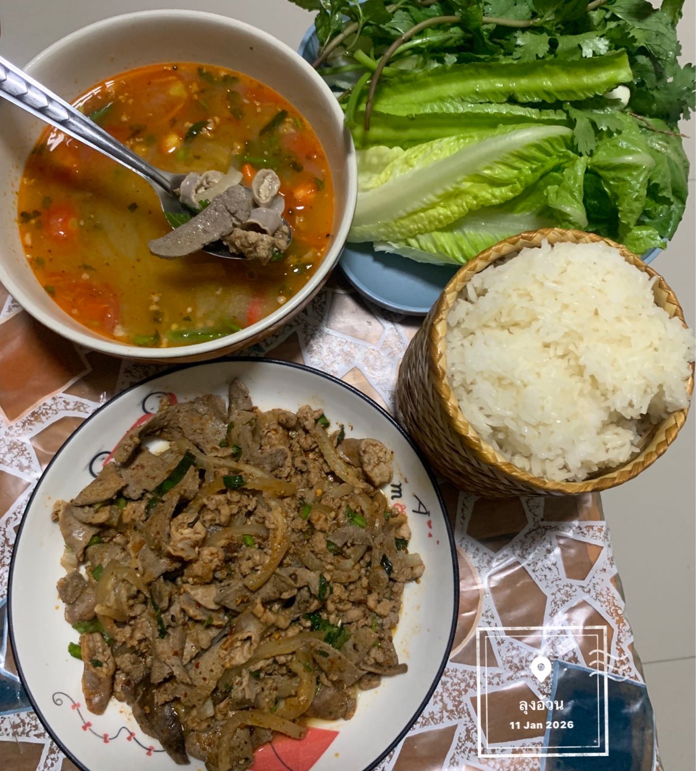 น้ำซุกก็เอา น้ำต้มเครื่องใน ปรุงรส ใส่ลาบผัด ใส่มะเขือเทศหั่น ใส่พริกขี้หนู บีบน้ำมะนาว ซดคล่องคอ