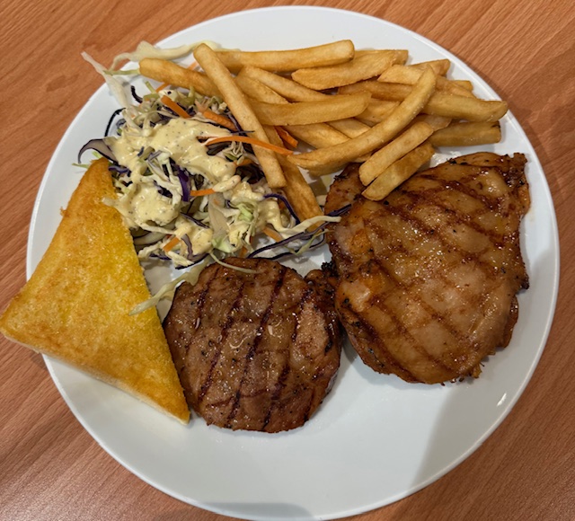 วันนี้ออกไปทาน สเต๊กลุงหยิกกับครอบครัว ค่ะ ไป 3 คน สั่งมาคนละอย่าง ดังนี้ 1. ซุปเปอร์เบอร์เกอร์ไก่ทอด 139 บจานใหญ่มาก ไก่ทอดกรอบดีค่ะ ชอบตรงซอสชีสที่ราดเฟรนฟรายส์เยอะจุใจ จานนี้คิดว่ากินสองคนก็อิ่มนะ