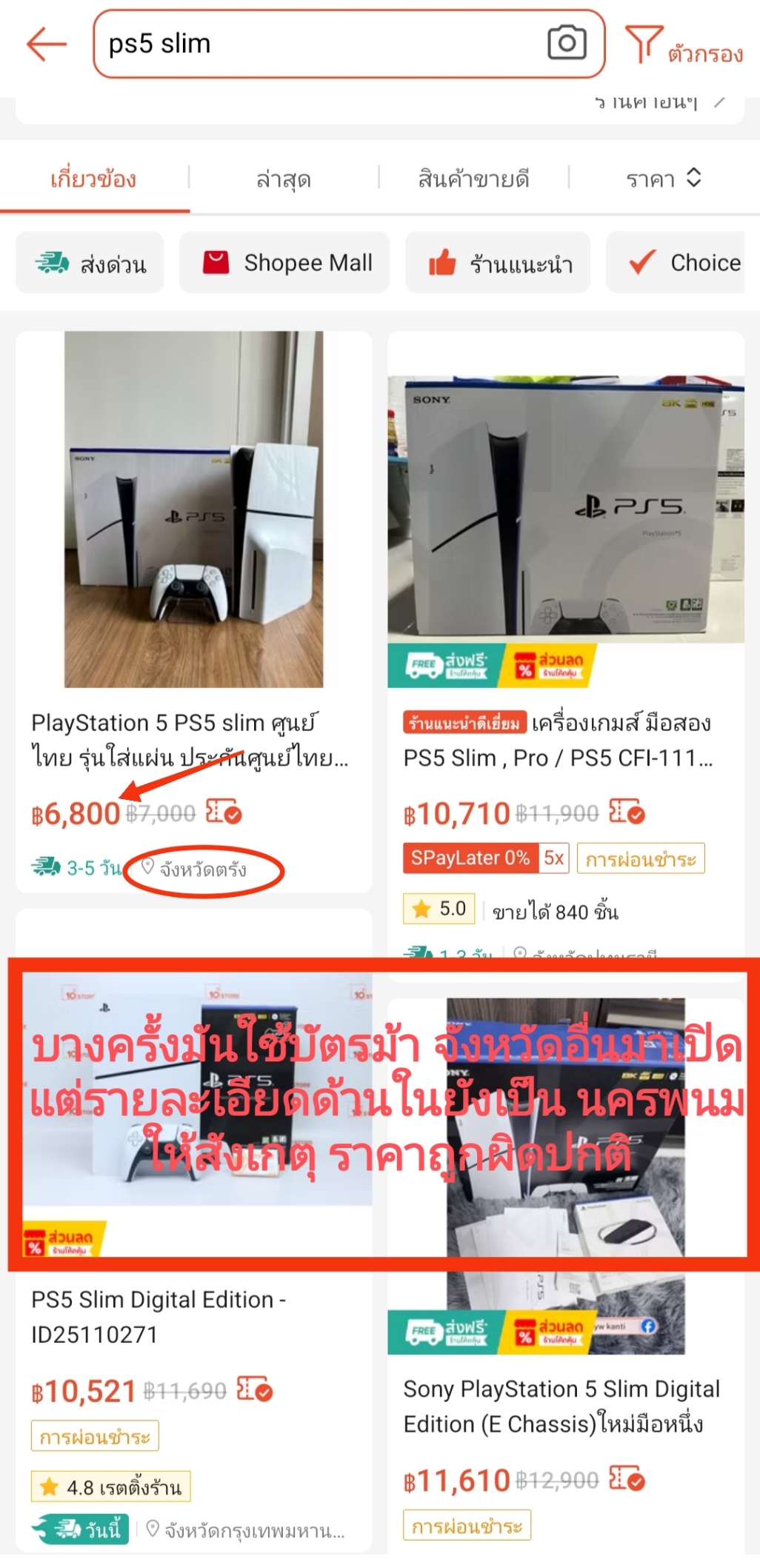 เข้าแอป shopee ลอง search จะทดลองกดหา ps5 slim