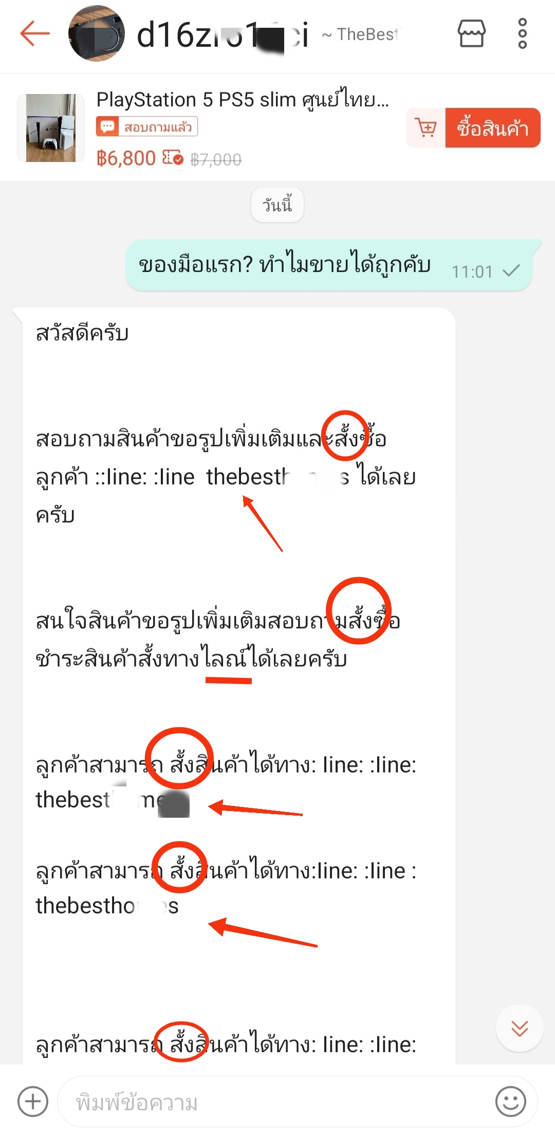 ทีนี้ ถ้าเหยื่อ ไม่สะดวกเดินทางไป มันวางหมาก ให้สอบถามทาง "ช่องแชท"