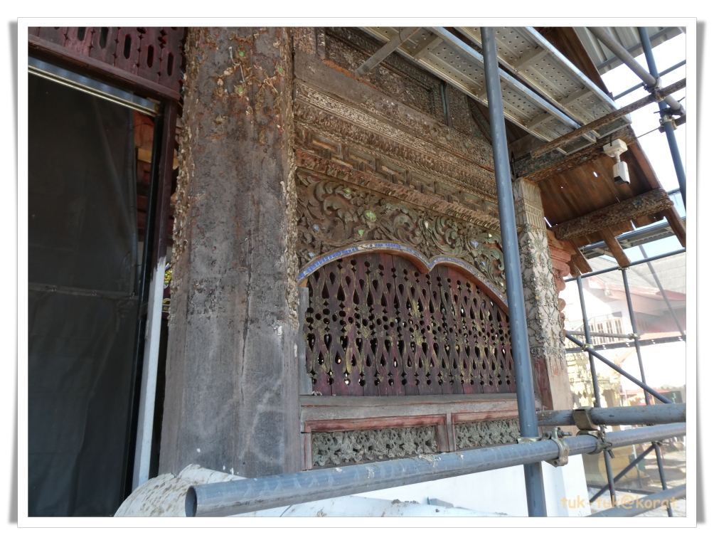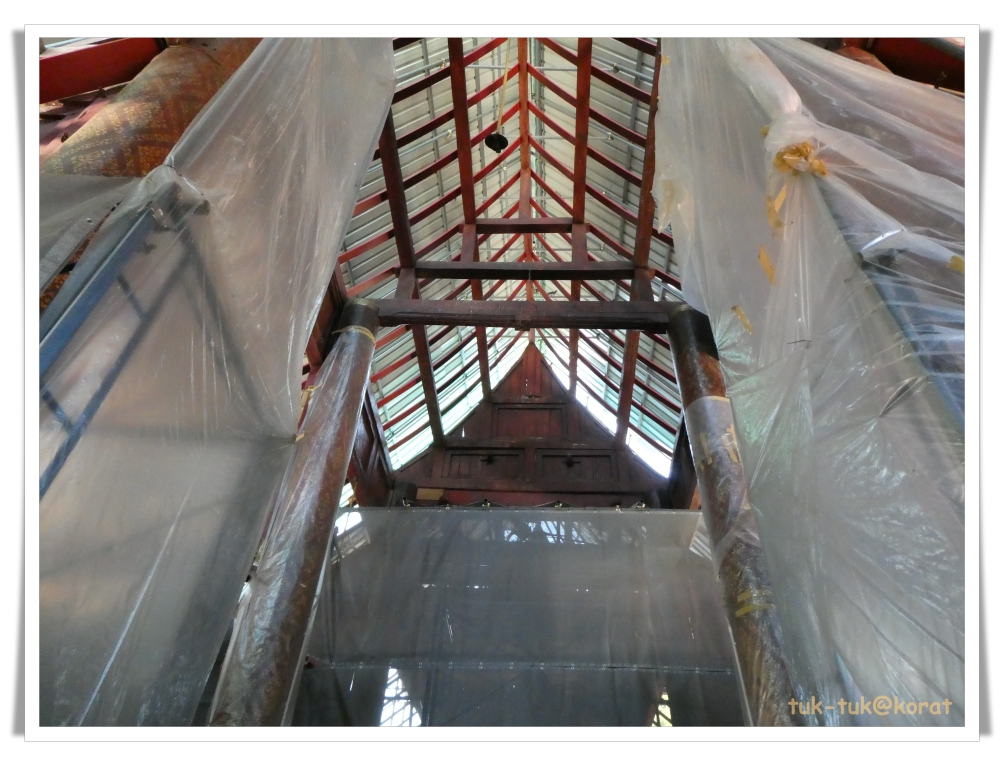 เลี้ยวเข้าประตูวัดก็พบกับภาพวิหารที่จะมาถ่ายรูปกำลังบูรณะ ... อีกแล้ว