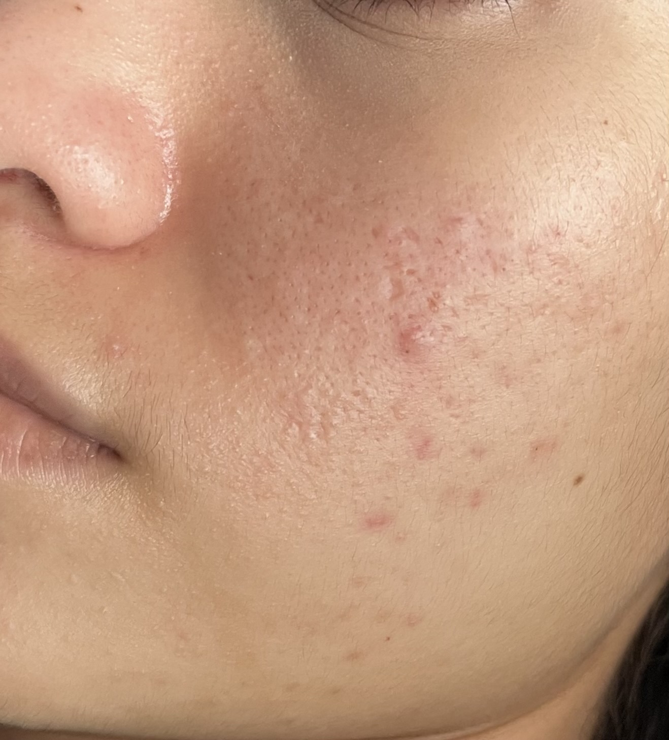 เมื่อก่อนเป็นสิวเยอะกว่านี้มากค่ะ เลยลองใช้acnetin a มาประมาณปีกว่าๆ สิวลดลงเยอะมาก ไม่เห่อเหมือนเมื่อก่อน แต่ตรงแก้มยังเป็นแบบนี้ตลอดเลย มันคือสิวอะไรคะ แล้วรักษายังไงดีT_T