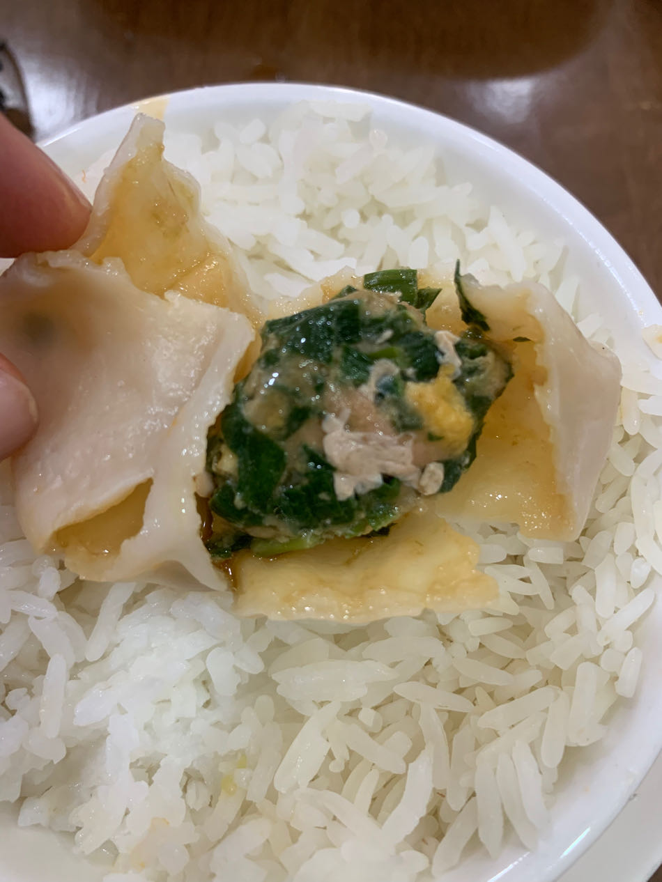ไส้เกี๊ยว หมูผัดไข่ผัดกุ่ยช่าย