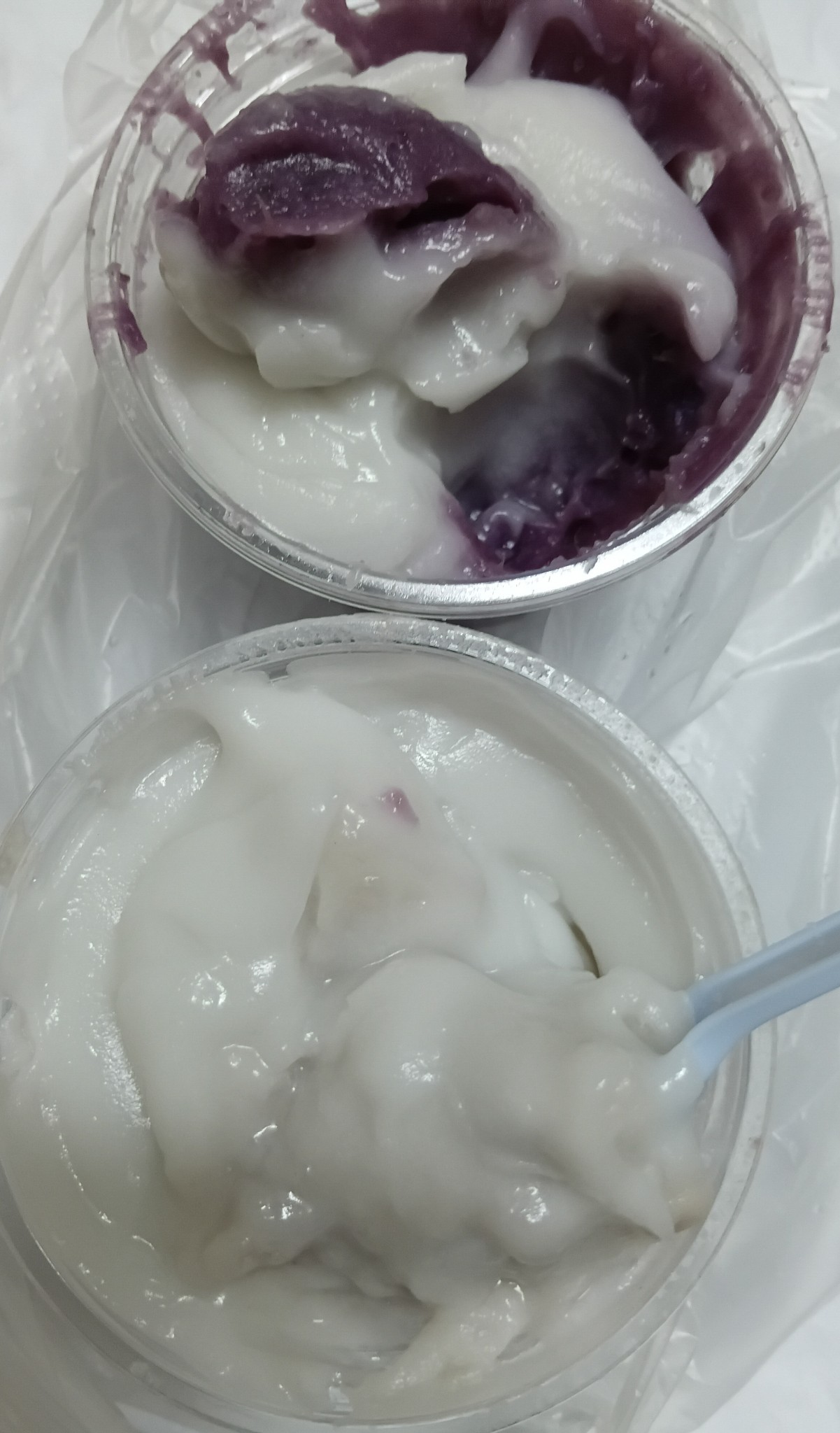 ให้เผือก กะมันม่วงเยอะมาก แต่กะทิกลบ พยายามจะตักให้ดูเละเลย เดี๋ยวจะมีคนมาบอก อาหารฉันไม่น่ากินอีก ไม่น่าอร่อย แหวะใส่ฉันอีก แหะๆๆ