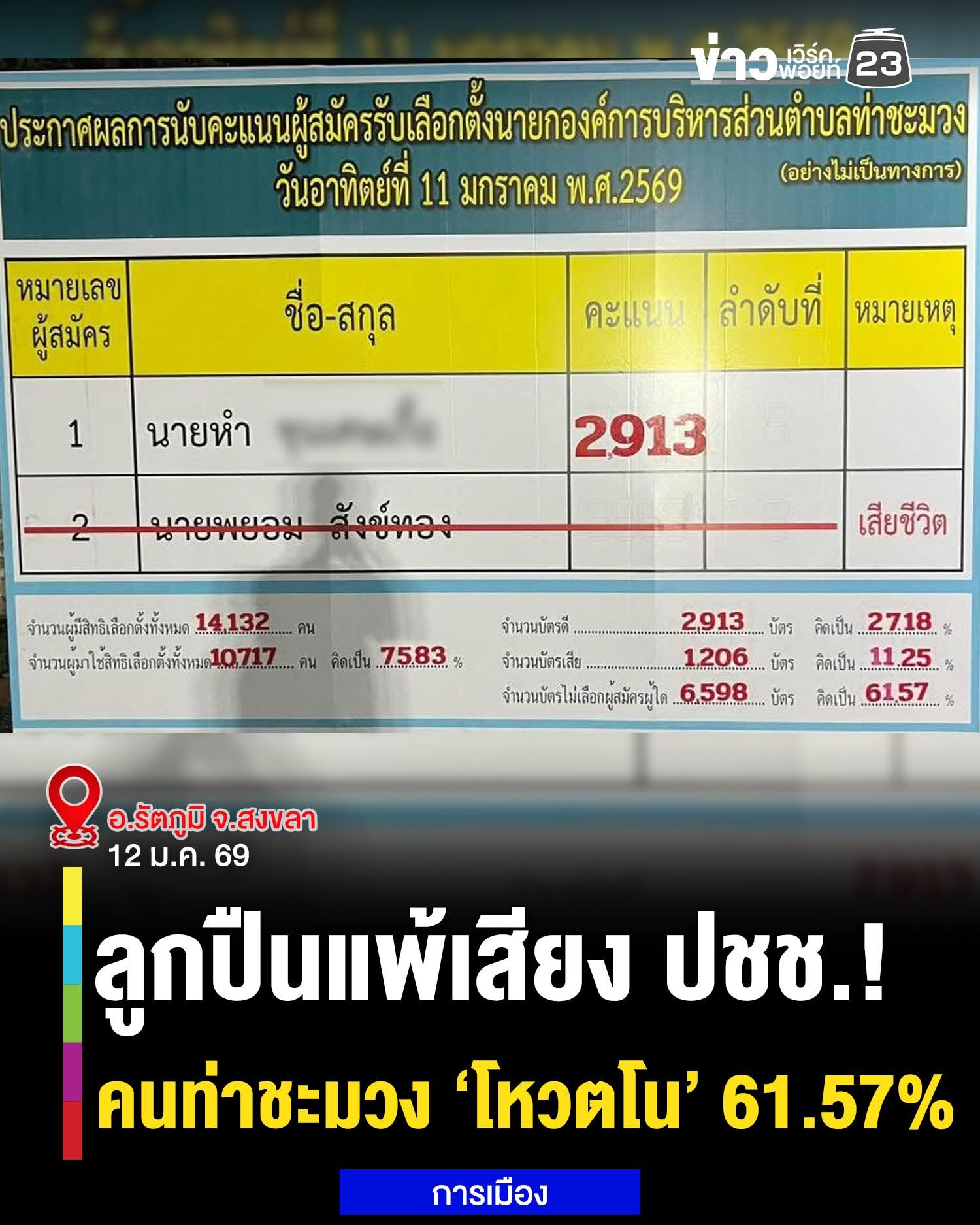🧐 ประชาชน "โหวตโน" เลือกนายก อบต.ท่าชะมวง หลังกำนันยองถูกยิงดับก่อนสิ้นปี 68