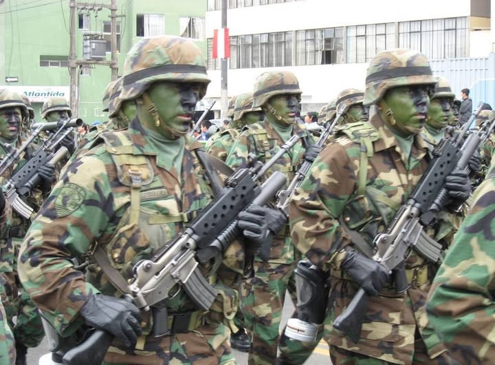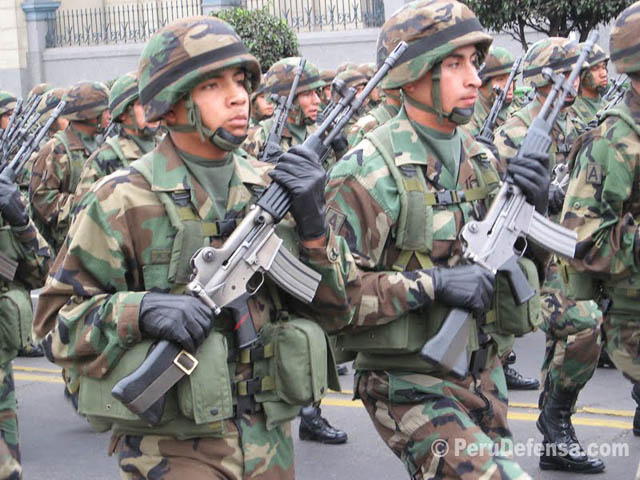 ทหารเปรูกับปืน Type 68 (สำเนา AKM) และ Type 63 (สำเนา RPD)