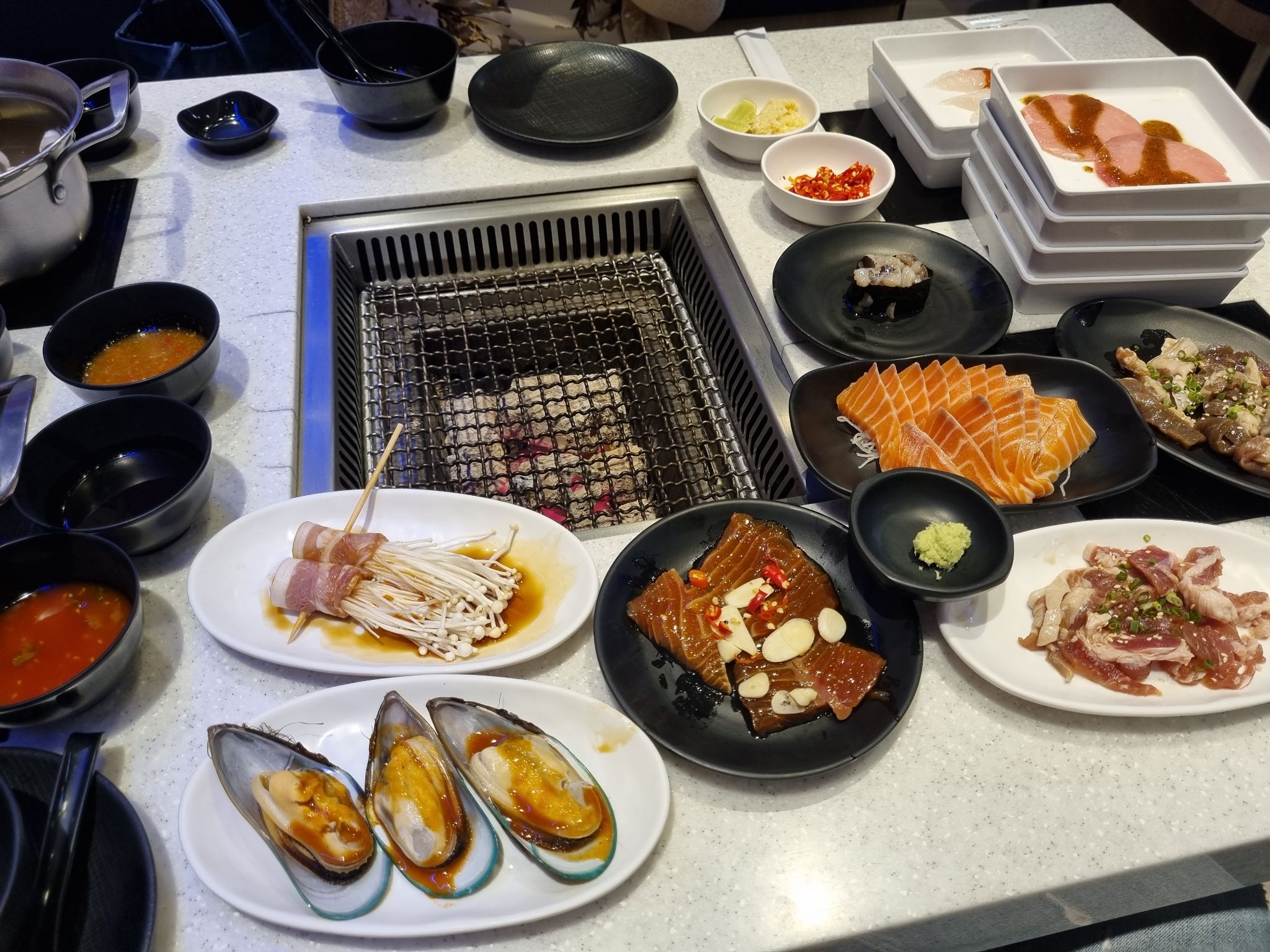 เขามีให้กินทั้งชาบูและปิ้งย่างในมื้อเดียวเลย แต่เวลาการกินนั้น มีเเค่ ชั่วโมงครึ่งเท่านั้น แบบนี้ต้องควบคุมเวลากันดีๆหน่อยแล้ว