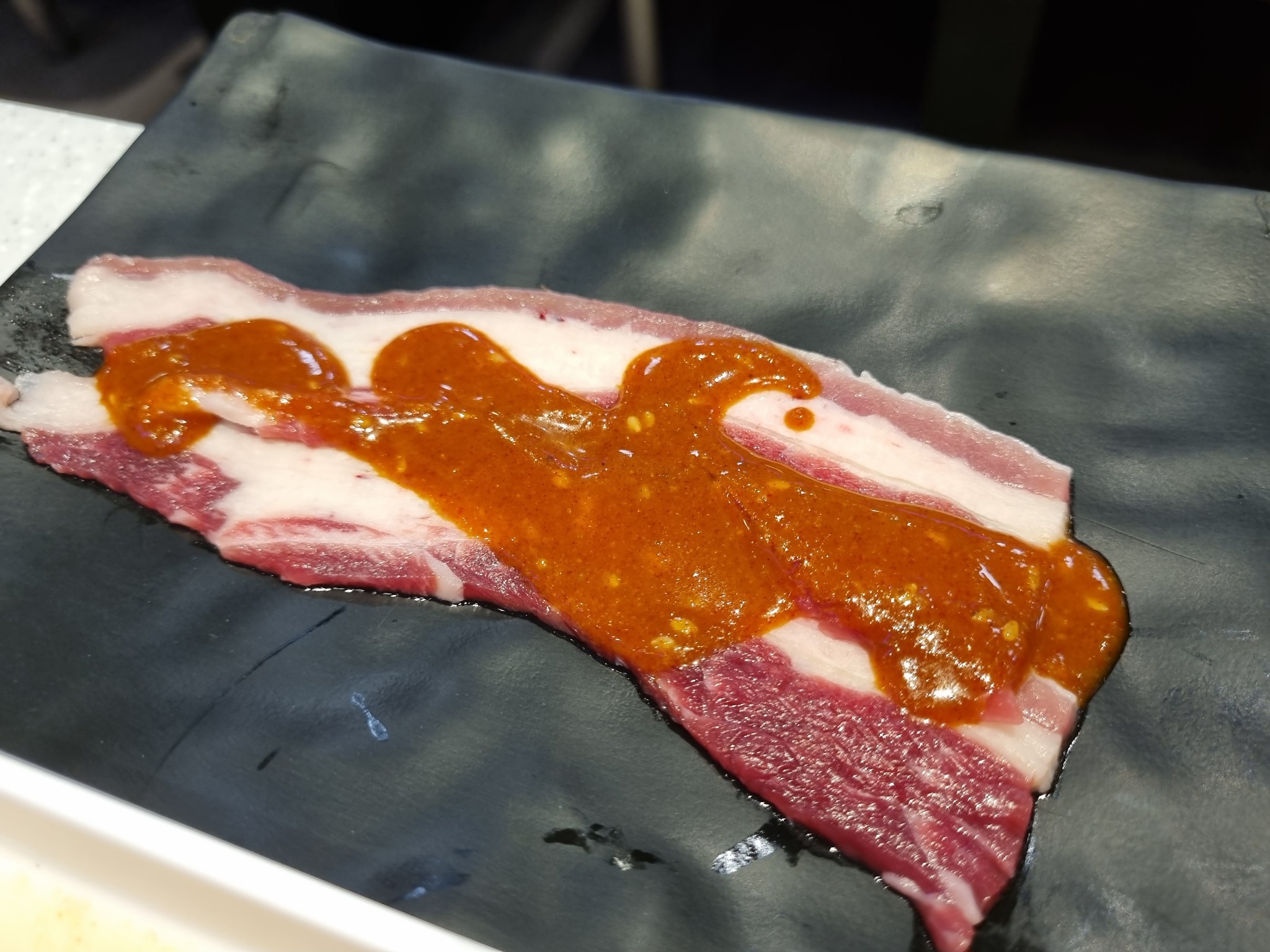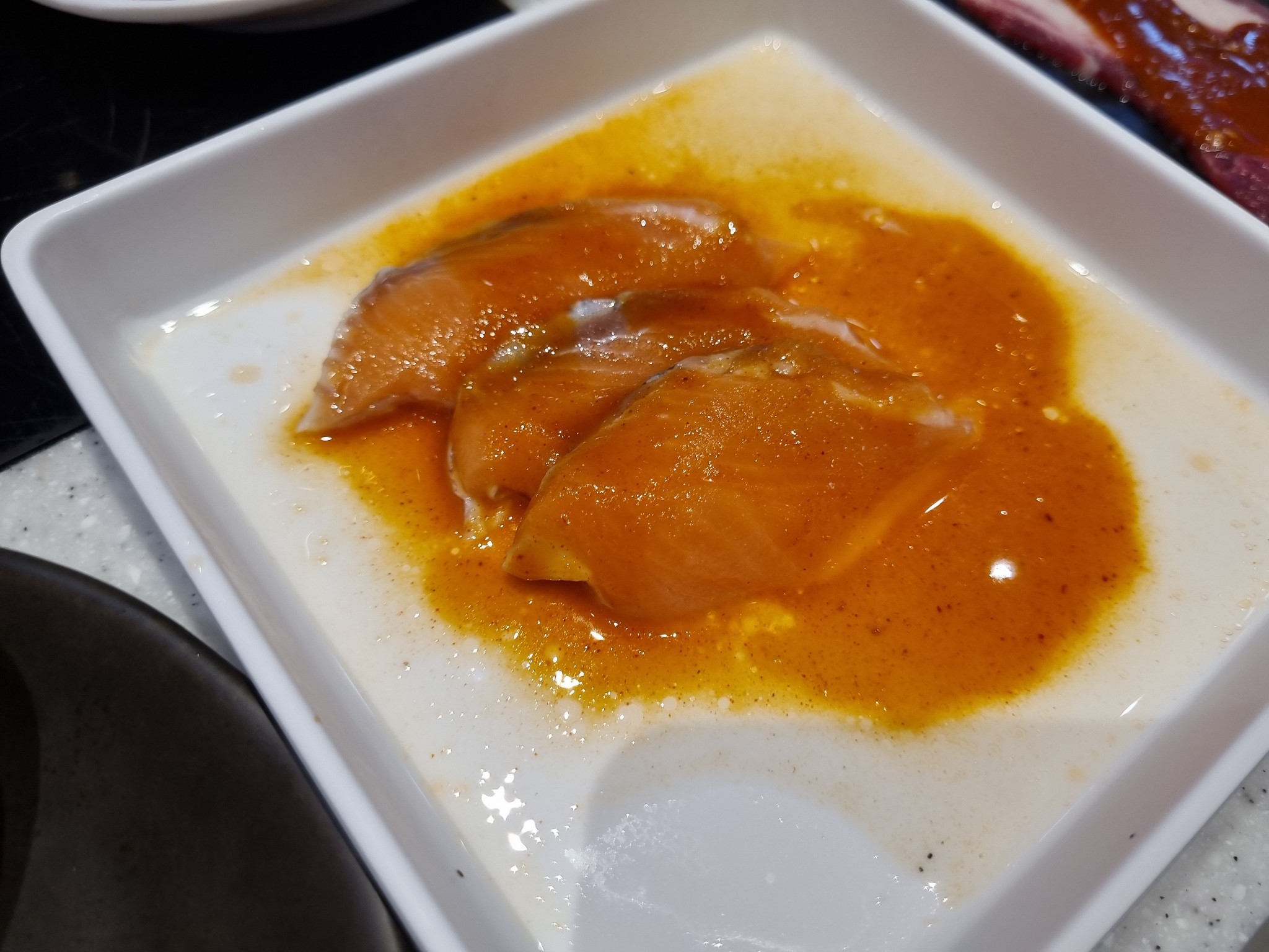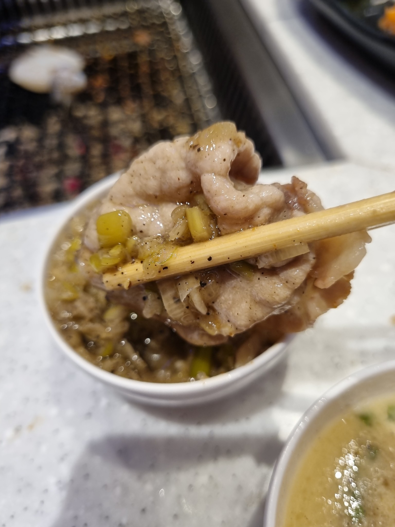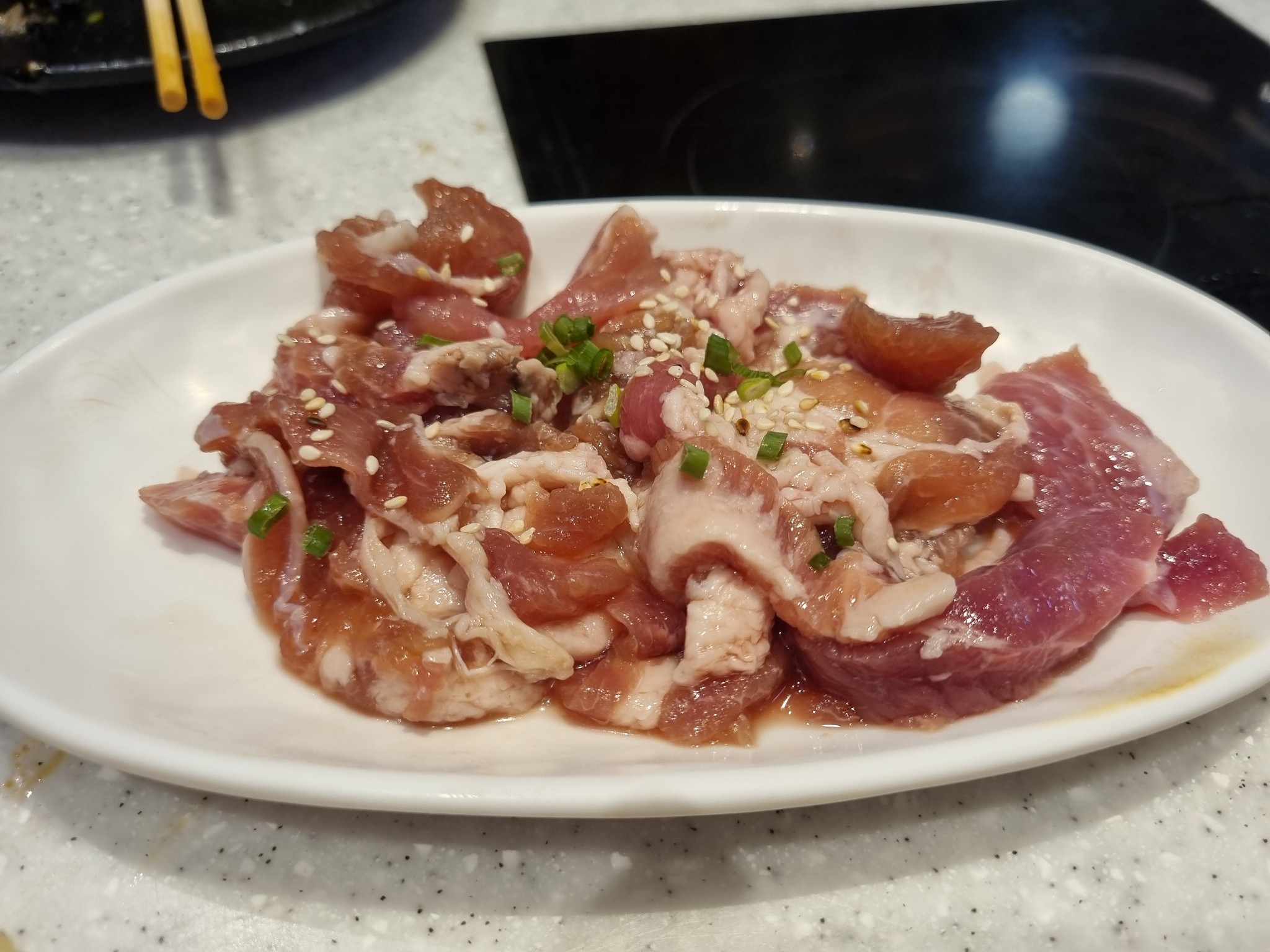 ในส่วนของเของย่างนั้น เนื้อหมูหมักซอสดูจะอร่อยโดดเด่นที่สุด เข้มข้นรสชาติ หอมหวานมันเกรียมหน่อย พวกเนื้อวัว