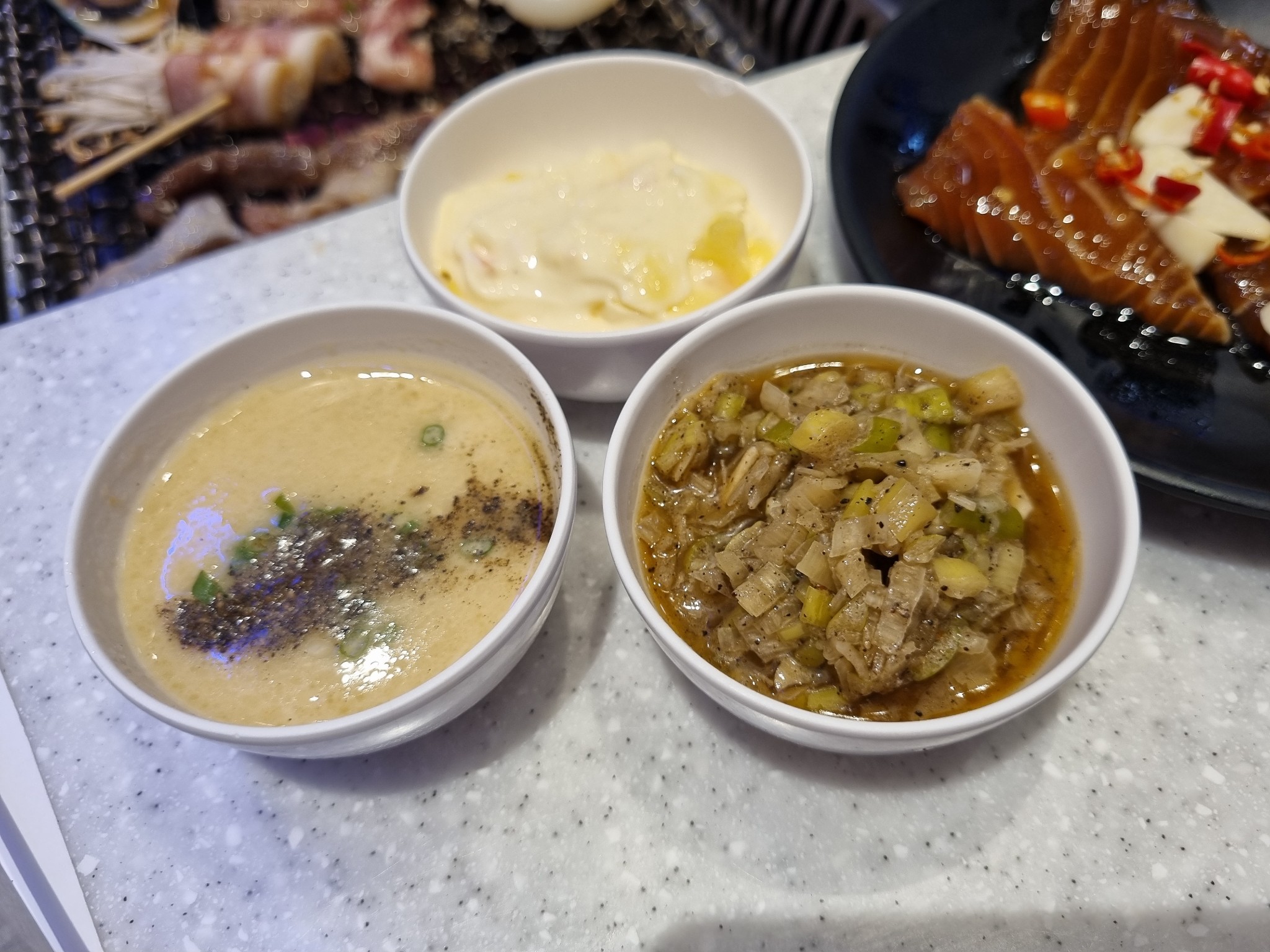 ซอสต้นหอมน้ำมันงา ออกเปรี้ยวๆได้กลิ่นหอมของต้นหอมพอประมาณ เหมาะกับพวกเนื้อย่าง