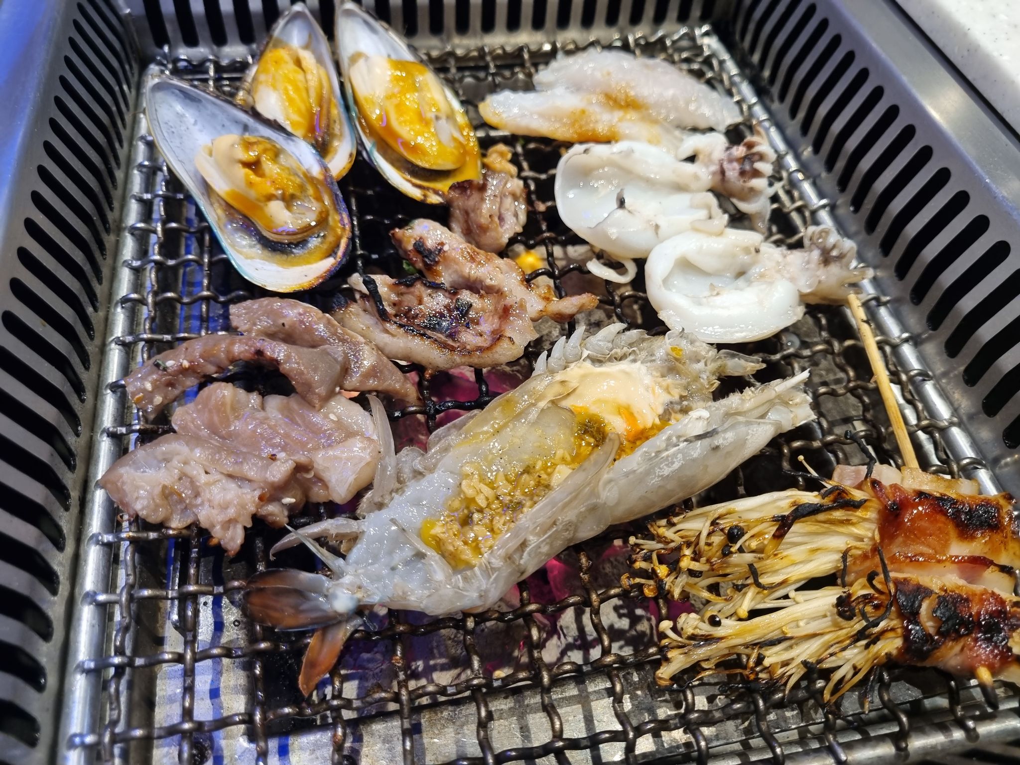 มีความอร่อยแบบพอดีๆ ไม่เข้มข้นมากนัก หมูสไลด์หมักยังบางและแห้งไปนิด ของทะเลย่างสดอร่อย รสชาติดี ไม่คาว