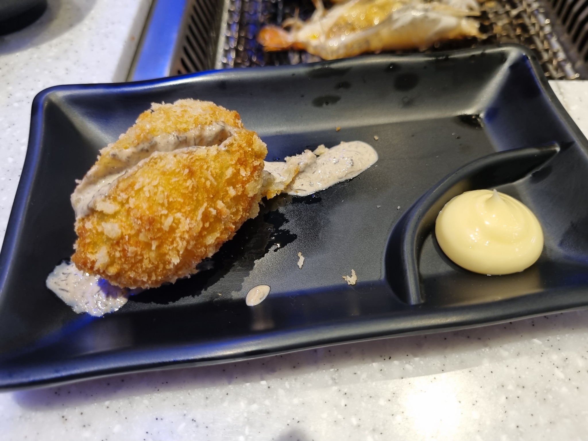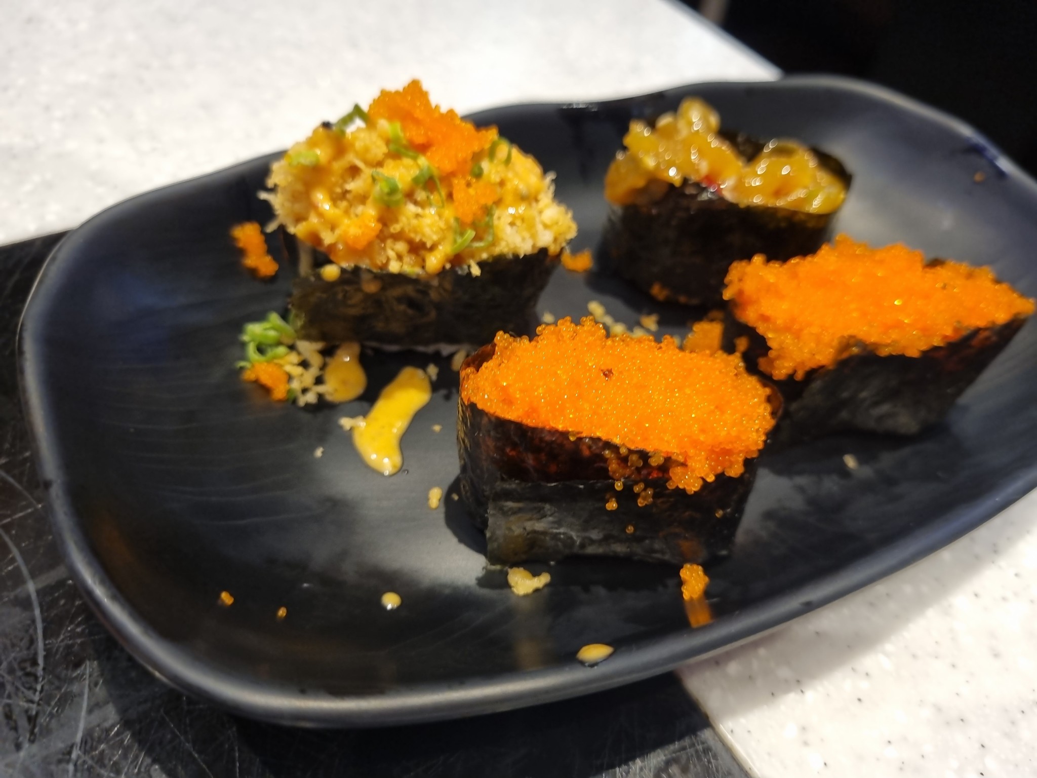 แฟนสั่งพวกข้าวกุงกังมาแก้เลี่ยน เลยแอบชิมสักหน่อย กุงกังแซลมอนสับรสชาติดีมาก นัวซอสครีมและกรอบกรุบผงเทมปุระ