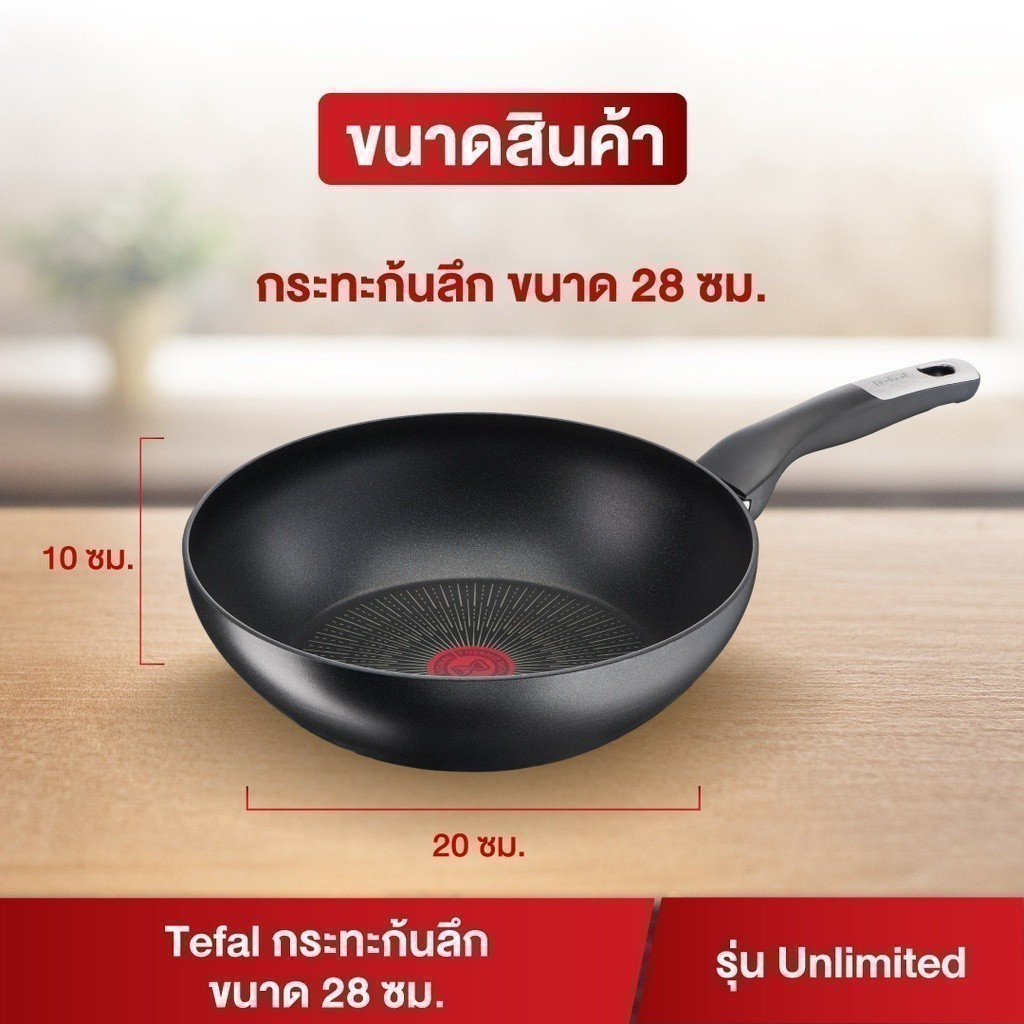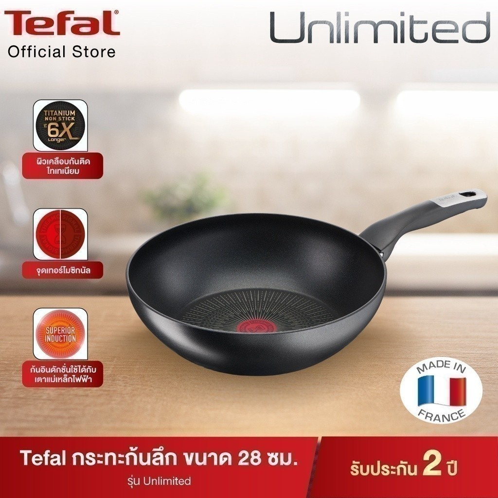 🍳🔥 กระทะก้นลึก Tefal Unlimited 28 ซม รุ่น G2551902 ผิวไทเทเนียมไม่ติดกระทะ ใช้ได้ทุกเตา 🧲✨