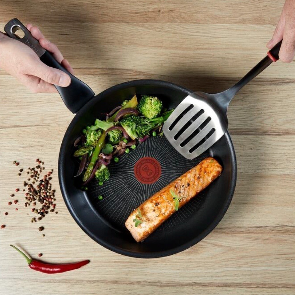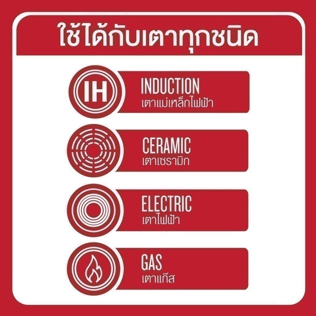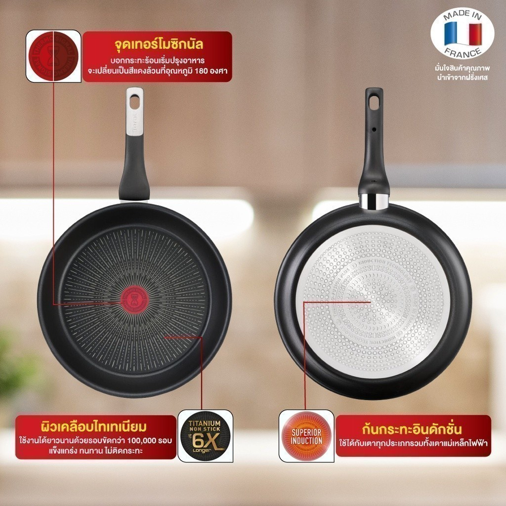 จุดที่ช่วยให้ทำอาหารสนุกขึ้นคือ Thermo-Signal ที่เปลี่ยนเป็นสีแดงเมื่ออุณหภูมิประมาณ 180°C ทำให้กะจังหวะเริ่มปรุงได้แม่นขึ้น ก้นกระทะแบบอินดักชั่นใช้ได้กับเตาแม่เหล็กไฟฟ้าและเตาทุกประเภท เหมาะกับบ้านที่ใช้เตาหลายแบบ หรือคนที่ทำอาหารปริมาณเยอะเพราะทรงก้นลึกขนาด 28 ซม อีกทั้งมีรับประกัน 2 ปี เพิ่มความสบายใจในการใช้งาน เลือกใบเดียวแล้วจบงานครัวได้หลากหลายด้วย กระทะก้นลึก Tefal Unlimited 28 ซม 🍳