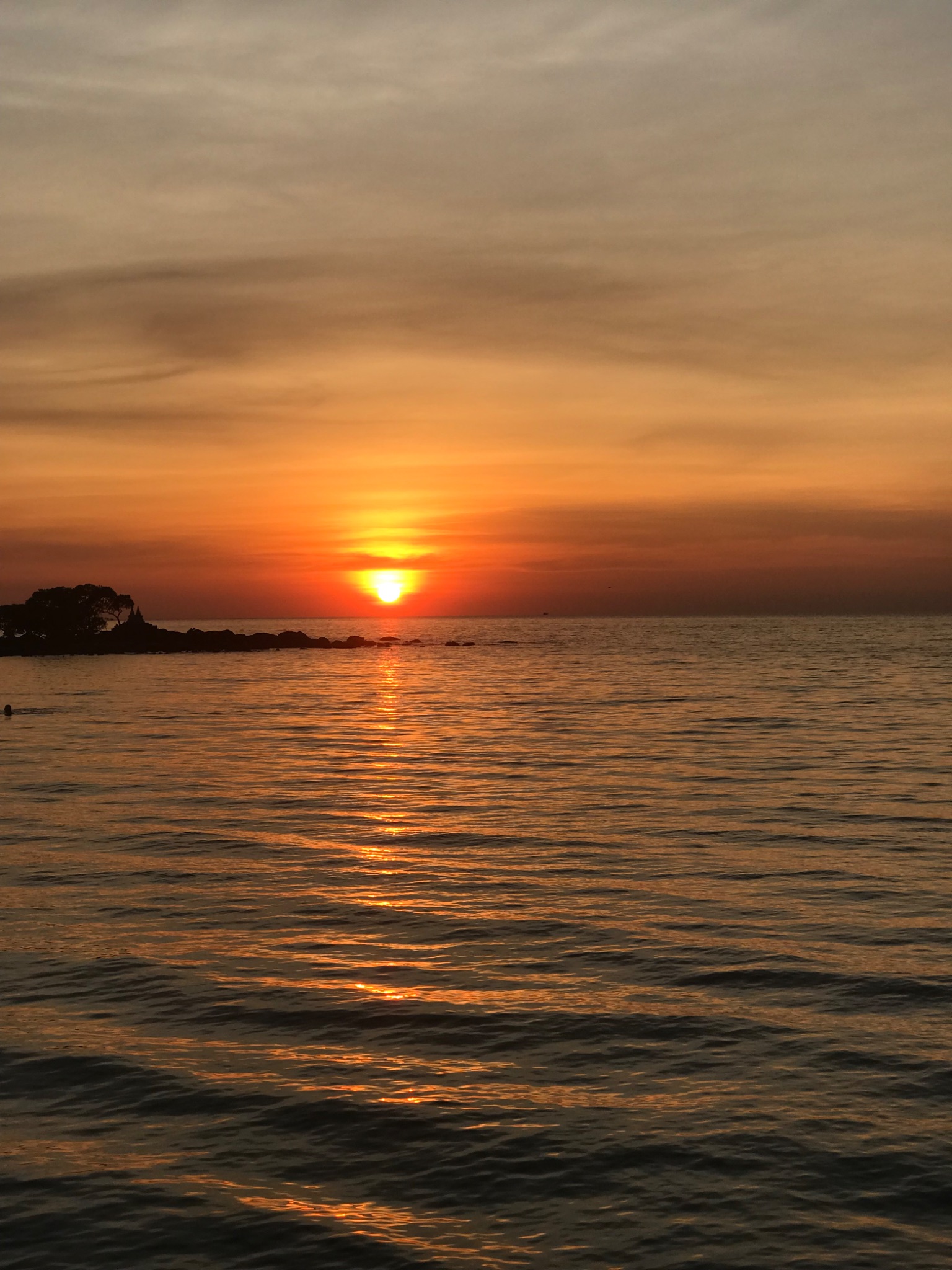 ดำน้ำเสร็จเรากลับที่พัก อาบน้ำพักผ่อนสักหน่อยเพื่อนก็ออกไปว่ายน้ำเล่นที่หน้าหาดตอนบ่าย2 สรุปไหม้แดด หิวอีกแล้วจ้าเดินไปกินส้มตำร้านเดิม แล้วก็กลับมานั่งชมวิวพระอาทิตย์ตกที่หาดต่อ ข้างๆหาดมีคาเฟ่ด้วยนะ คนเยอะเลยแหละ
