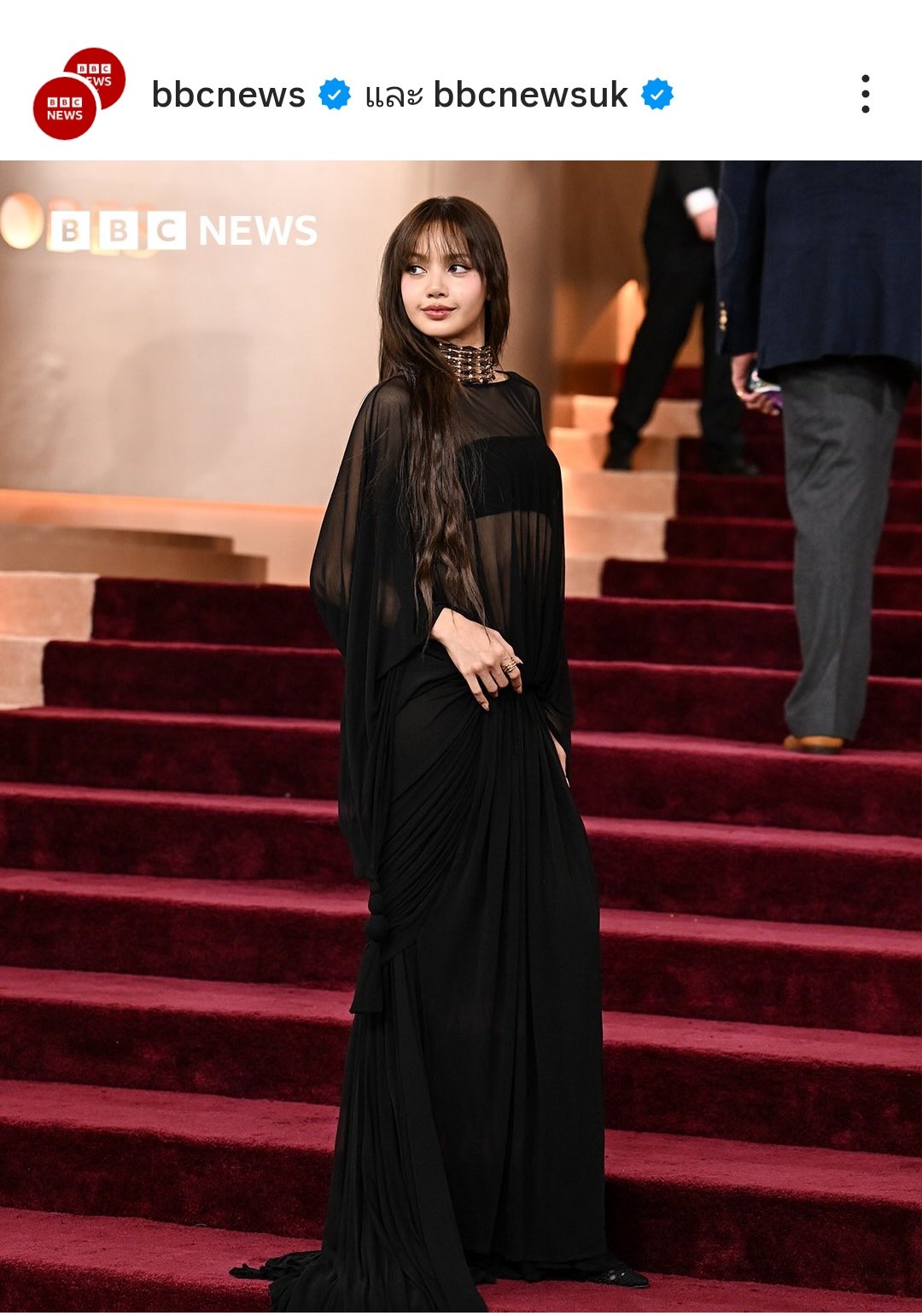 ทั้ง cnn ทั้ง bbc ได้โพสภาพเหล่าคนดังในงานหนึ่งในนั้นคือลิซ่า