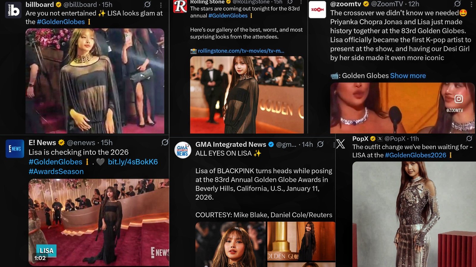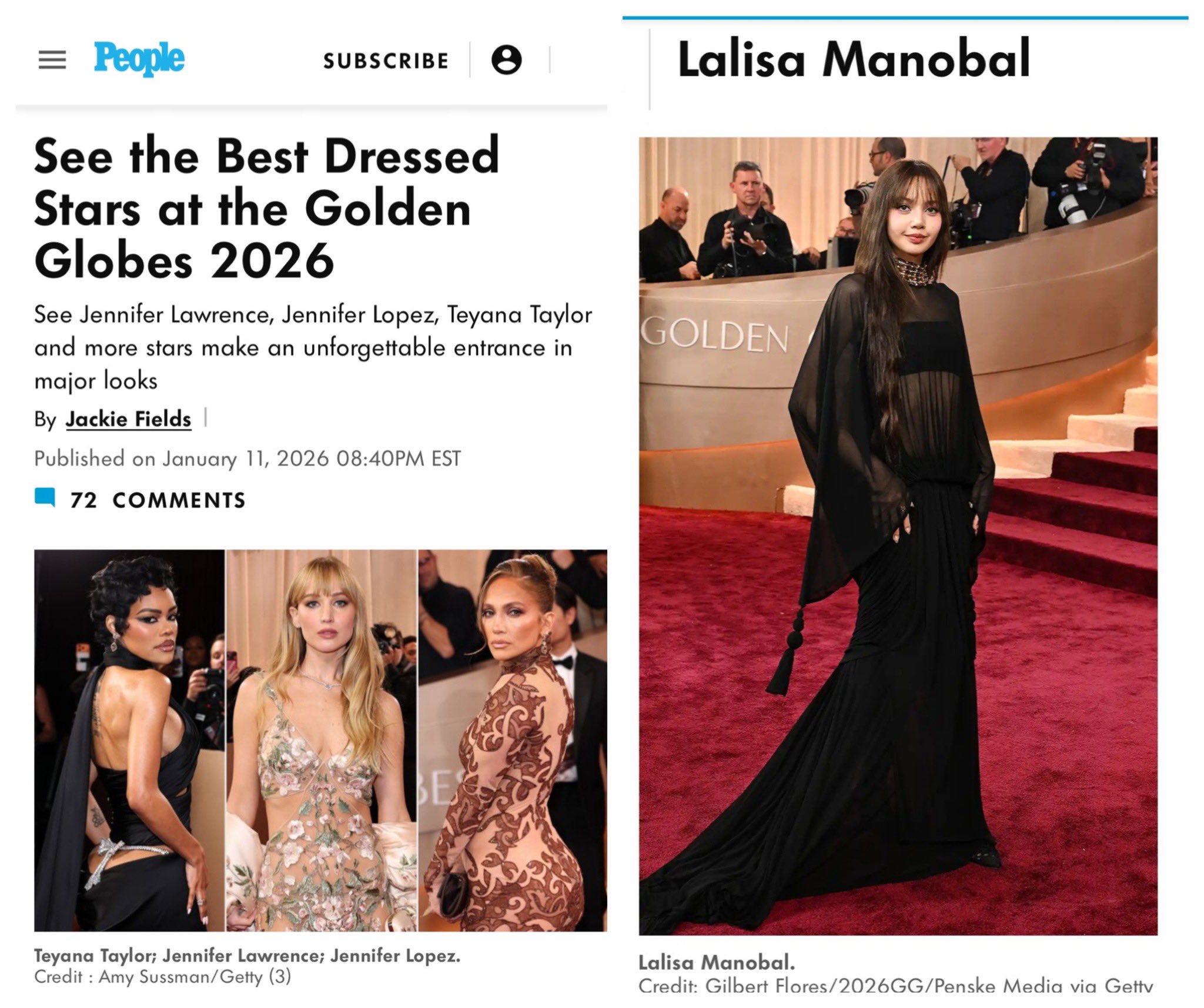 สื่อทั่วโลกในทุกวงการ ลงข่าวลิซ่าในงานประกาศรางวัลลูกโลกทองคำ