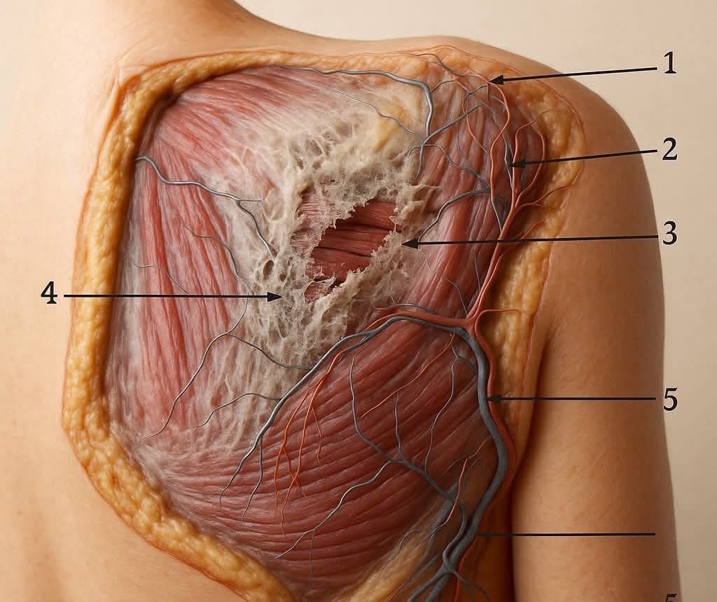 *** เพราะ "พังผืดเหล่านี้" บางส่วนอยู่ชั้นลึกแต่อยู่เป็นจุด บางส่วนอยู่กล้ามเนื้อชั้นบนแต่ก่อนบริเวณกว้าง