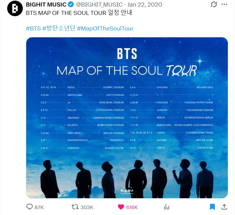 อันนี้เป็น  Map  of  The Soul  Tour  ที่ถูกยกเลิกไปในปี   2020  เพราะโควิด