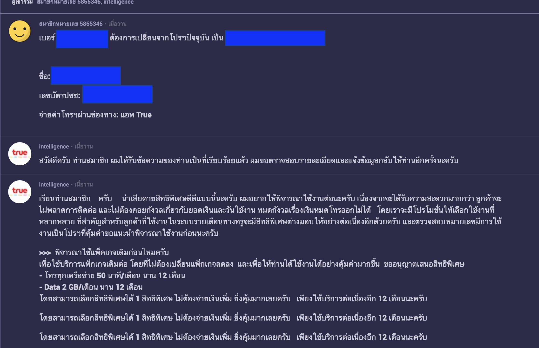 พนักงาน Call center ของ True นี่เป็นอะไรคะ (และต้องการข้อมูลย้ายค่ายเบอร์เดิม)