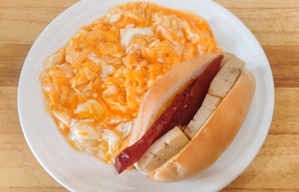 ขนมปังข้าวจี่ + ไข่ขยี้ 🌭🍳