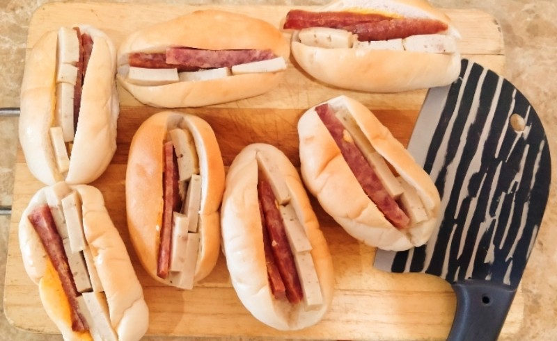 ขนมปังข้าวจี่ ไส้กุนเชียง-หมูยอ 🌭🐷